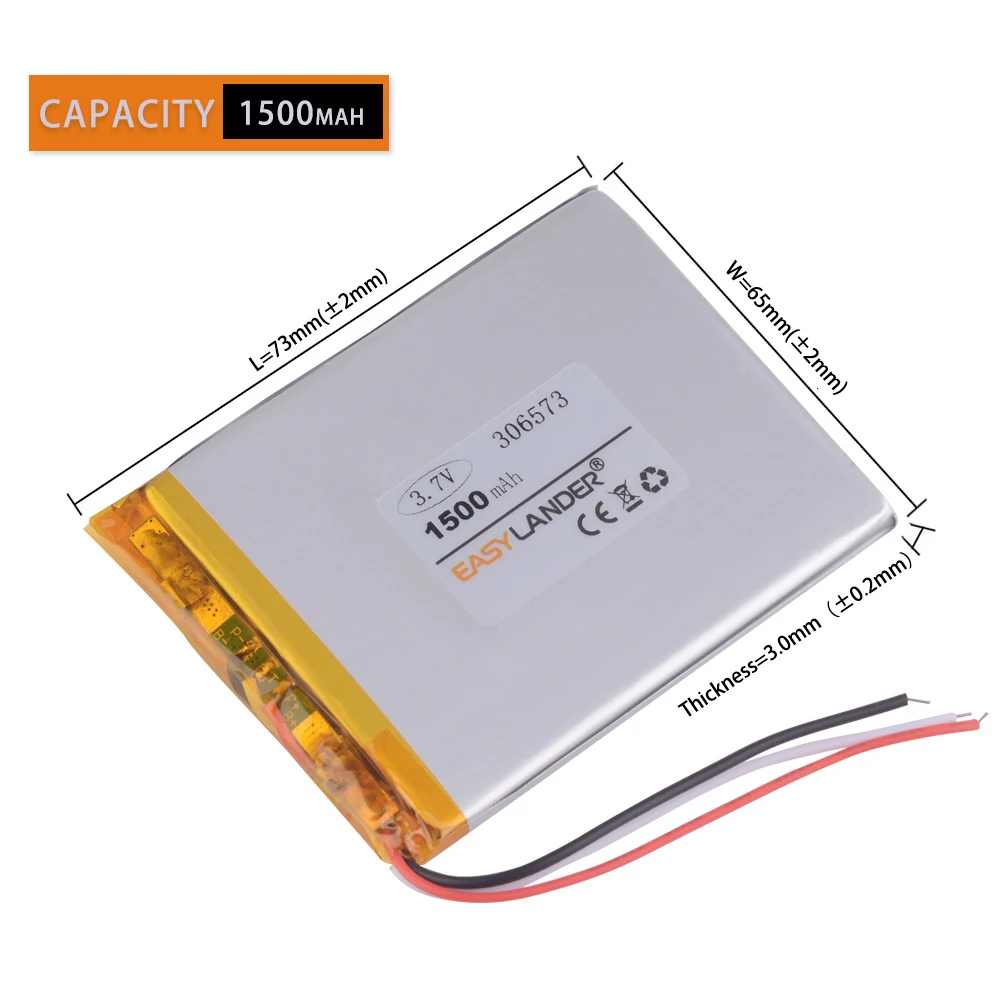 3Wries 306573 3,7 V 1500mAh литий-полимерный аккумулятор для Vedio Game анимированная электронная книга Digma E629