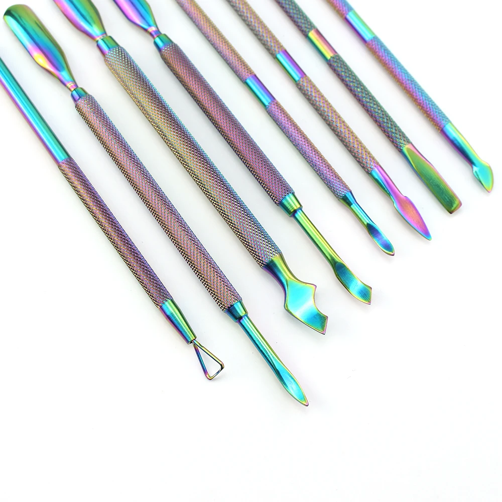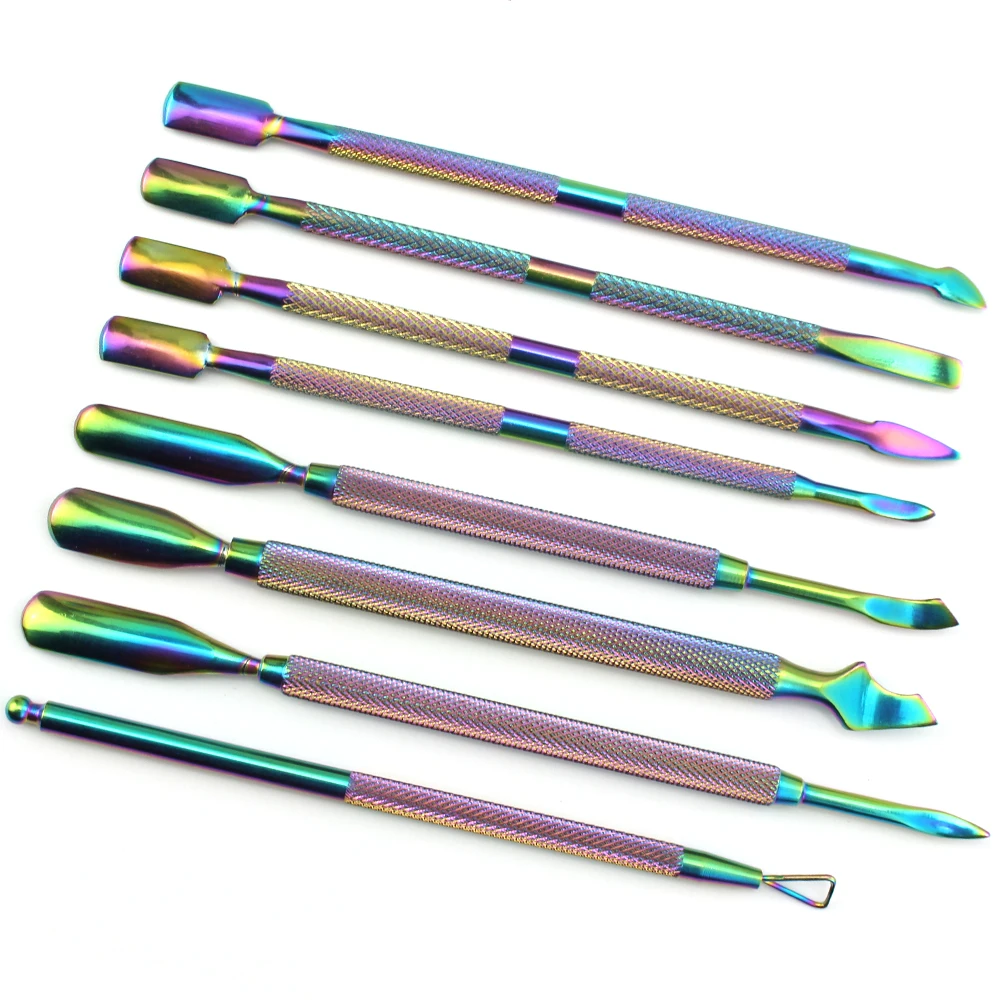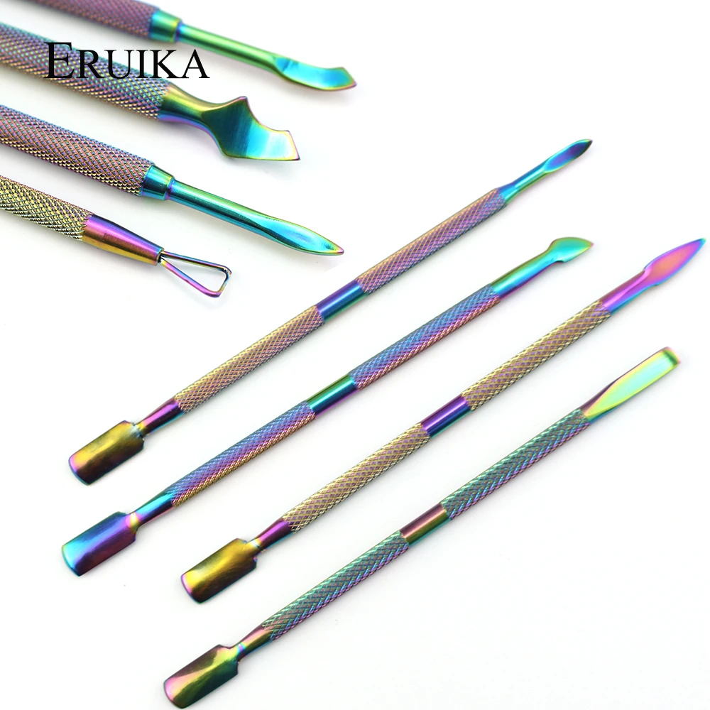 Резак для маникюра ERUIKA Радужный двусторонний из нержавеющей стали для удаления кутикулы и мертвой кожи, инструменты для ухода за ногтями, 8 типов