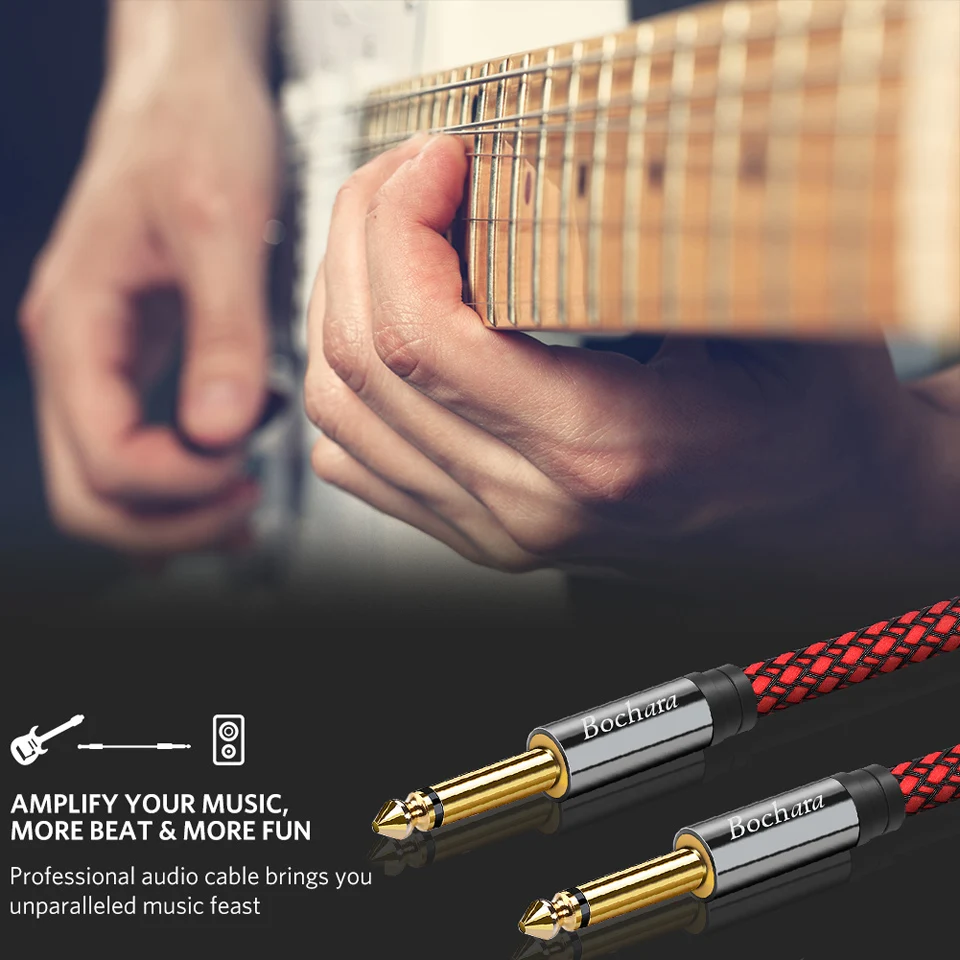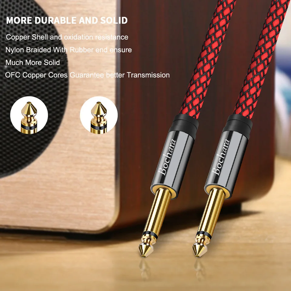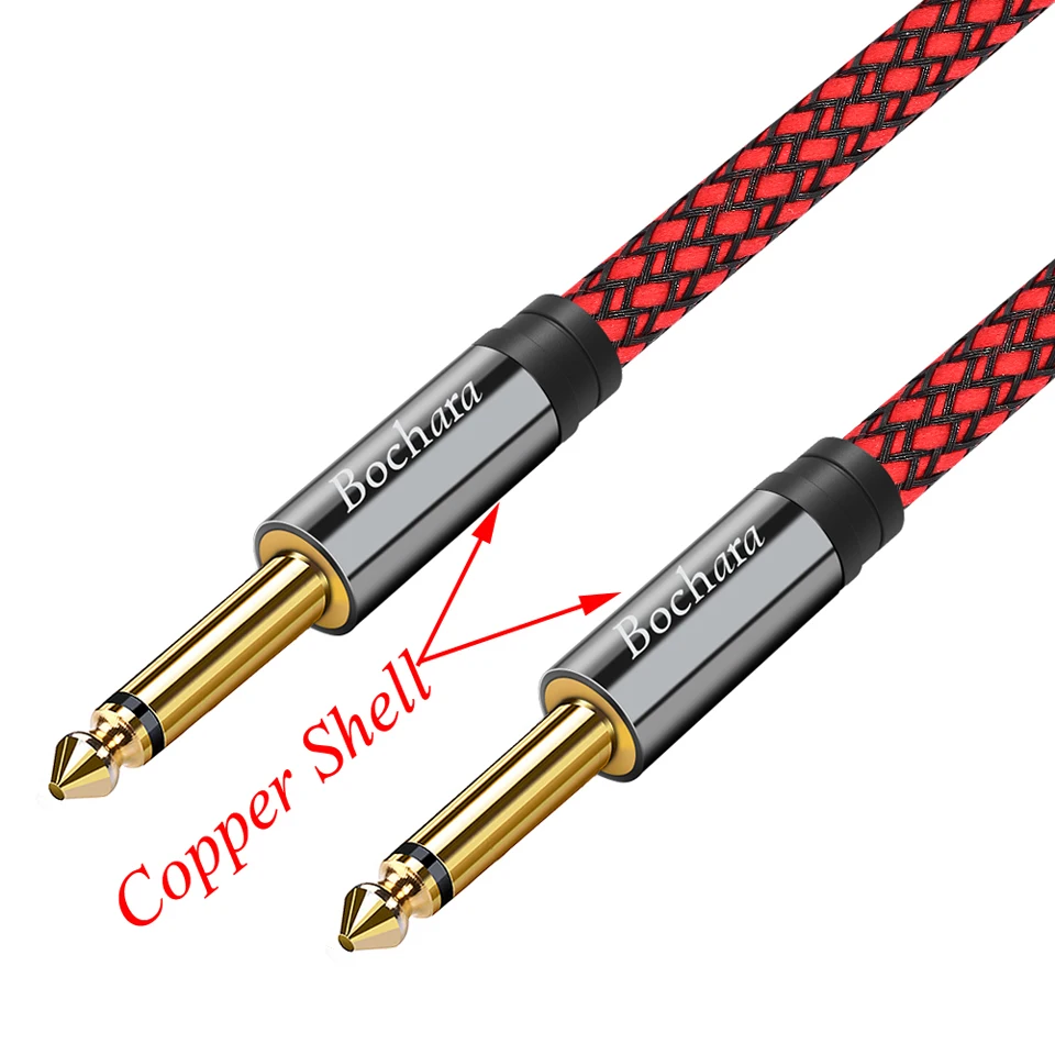 Кабель для гитарных инструментов Bochara, 14 дюйма, от TS до 6,35 мм, аудиокабель TS OFC в фольге + Плетеный экранированный кабель 2 м, 3 м, 5 м, 10 м