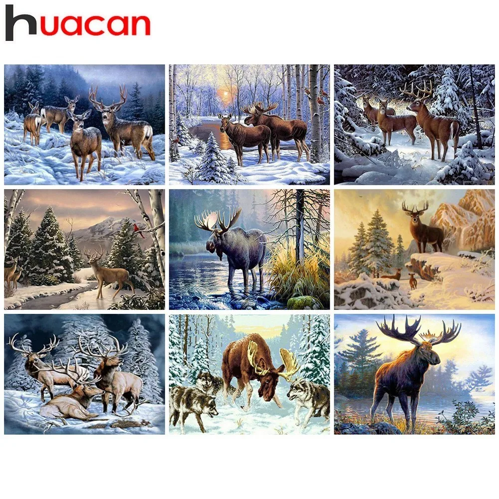Алмазная живопись Huacan с оленем, 5D алмазная вышивка сделай сам с животными, домашнее украшение, картина, мозаика, картины для подарка