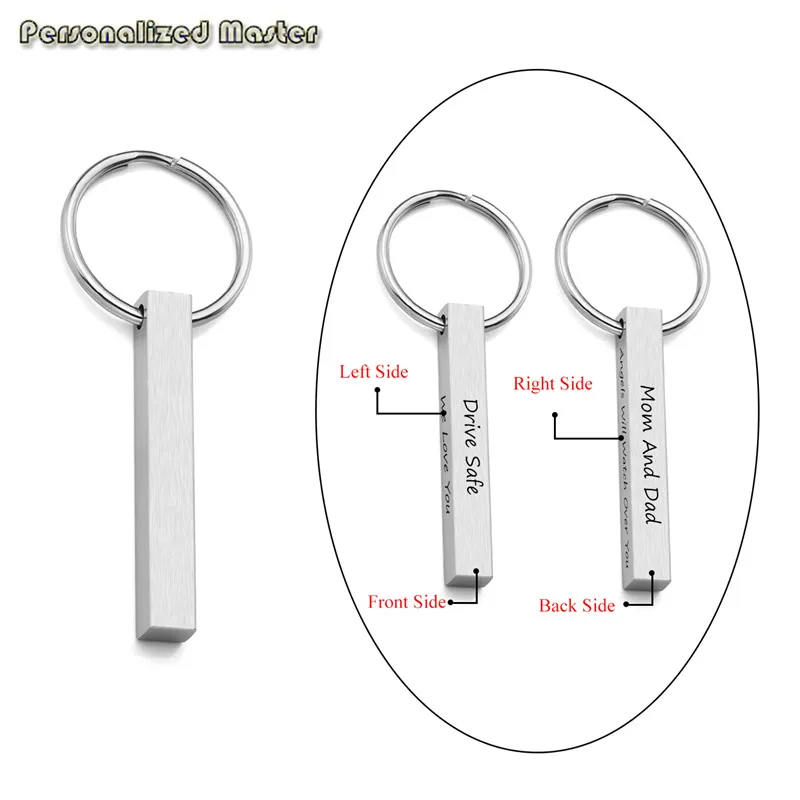 Брелок для ключей из нержавеющей стали, персонализированная гравировка мастеров, сообщений, имени, слов, 4-сторонняя Вертикальная подвеска, матовая панель, кольцо для ключей сделай сам