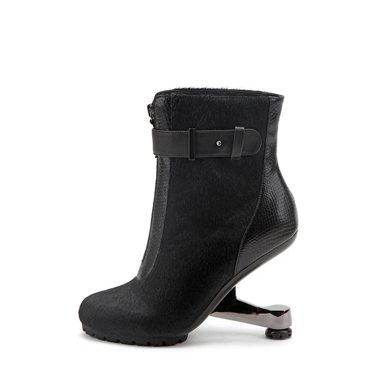 Женские ботильоны из натуральной кожи HL131 MUYISEXI, ботинки из конского волоса на необычном металлическом высоком каблуке, на молнии спереди, коричневые, черные, зимние
