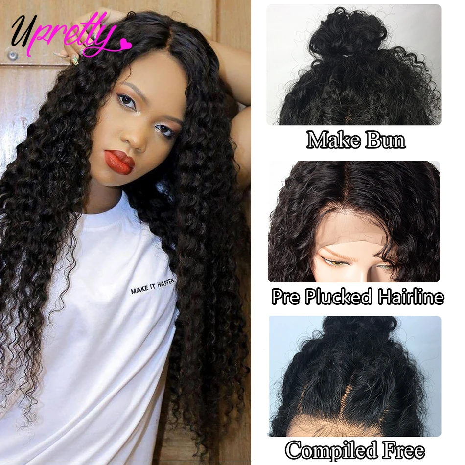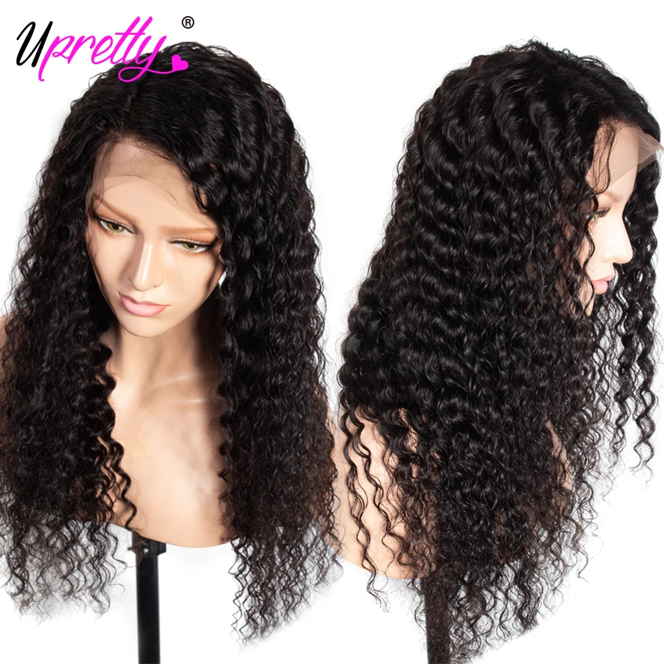 Upretty глубокий волнистый парик фронта шнурка кудрявые человеческие волосы парик предварительно выщипанные фронтальные парики шнурка 180 плотность кудрявые бразильские парики фронта шнурка