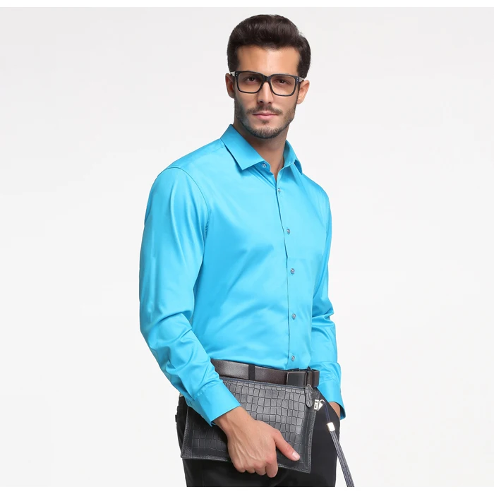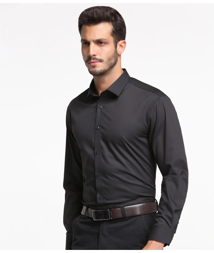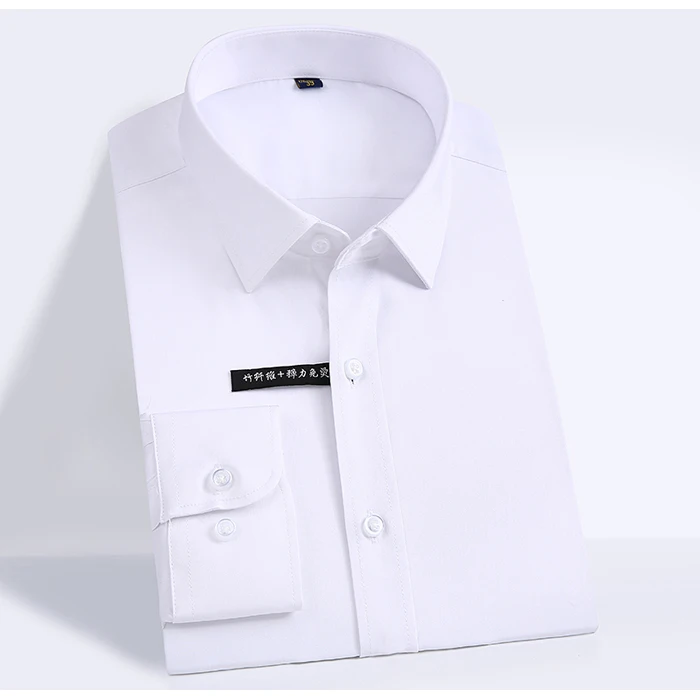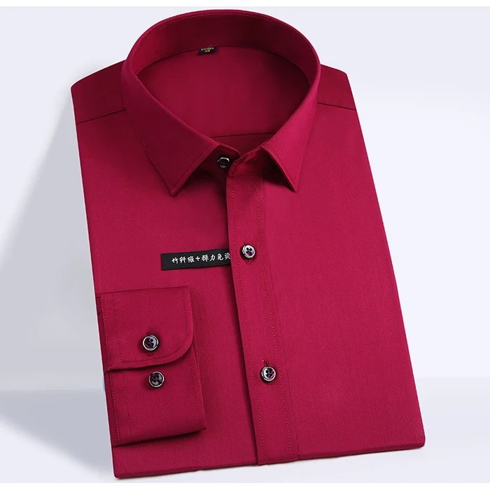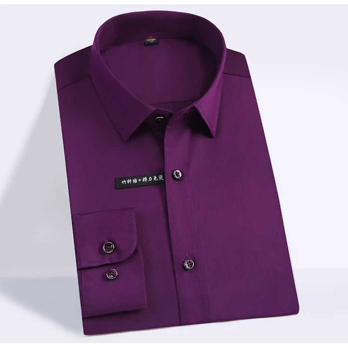 Мужская рубашка из бамбукового волокна, однотонная Классическая рубашка стрейч, с длинными рукавами, простой в уходе, для офиса и работы