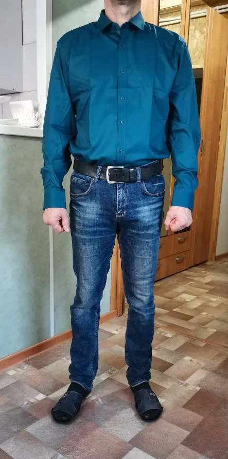 Рубашка классная, цвет очень красивый. Но на рост 175, вес 75 42 размер, большеват. Муж любит, чтобы не так свободна рубашка была, хочется более приталенный силует и плечи висят на сантиметр. Продавц молодец, внимательный. После заказа спросил точно ли мы свой размер заказали, я сказала параметры мужа, он тоже посоветовал 42 размер. И всё таки надо было 41 заказывать. Сейчас хотим заказать эту же рубашку 41 размера. Как придёт, напишу отзыв.