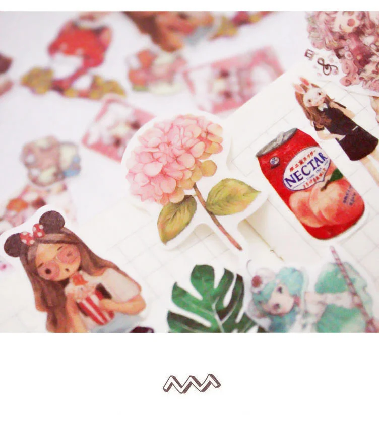 100 листов мультяшных милых стикеров для девочек, сумка для моделирования растений и цветов, клейкая наклейка, школьные Канцтовары, дневник, оптовая продажа