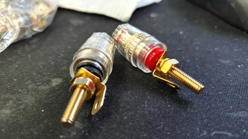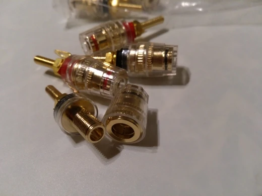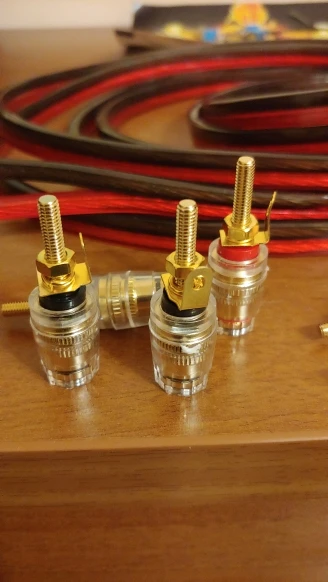 Хорошо, но не идеально. Резьба слишком короткая на стороне акустических кабелей, поэтому, когда радиальное отверстие только наполовину открывается, гайка уже отделена от порта. Нет возможности использовать Акустические кабели с диаметром радиального отверстия. Порты типа «банан» имеют острый край гайки, что позволяет использовать вилки типа «банан». Хорошая вещь в том, что выглядит хорошо и доставка быстрая. Я бы купил больше после улучшения этого продукта.
