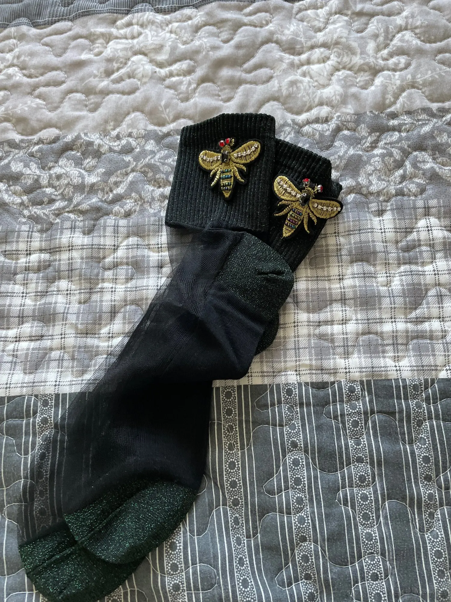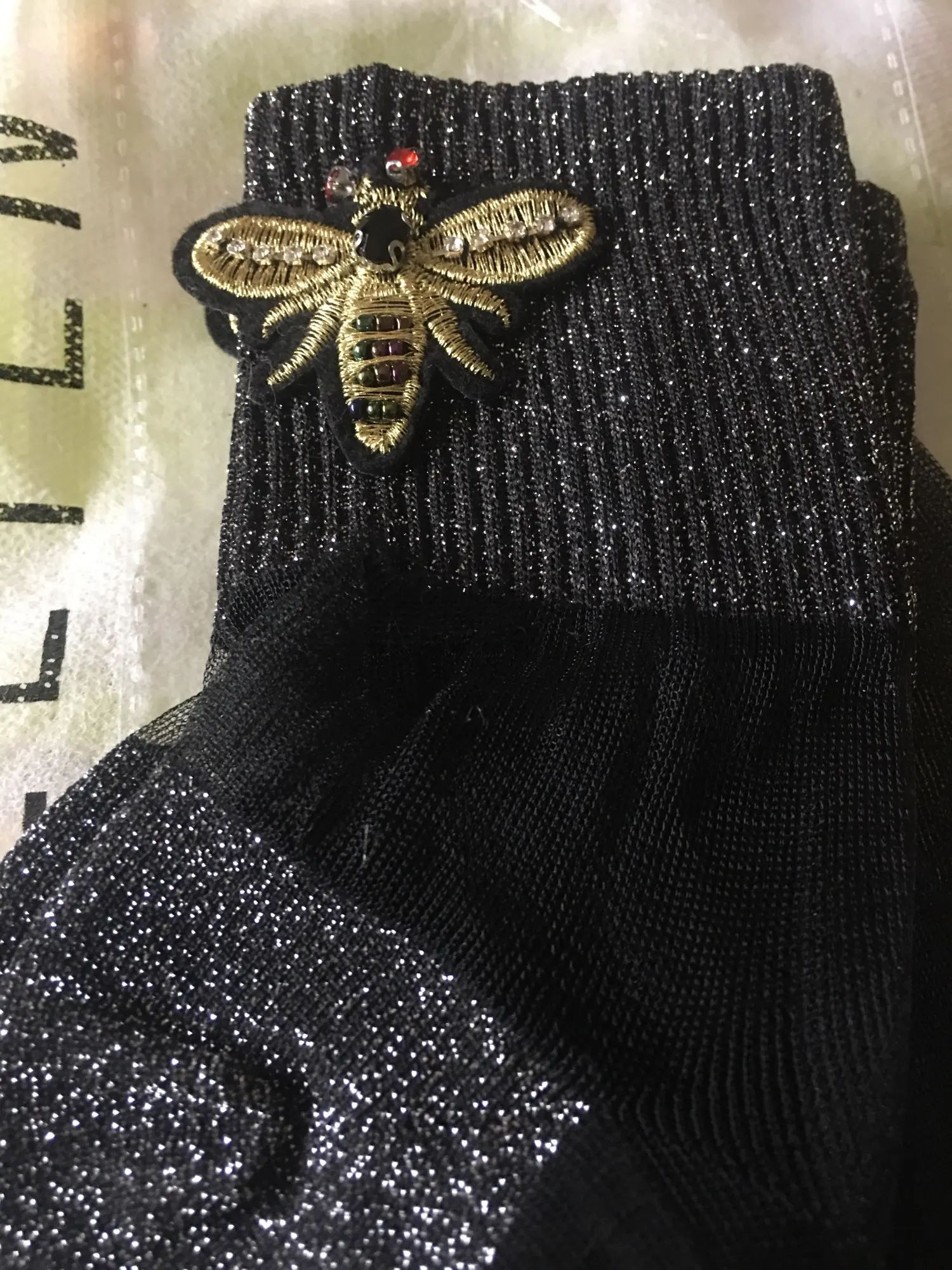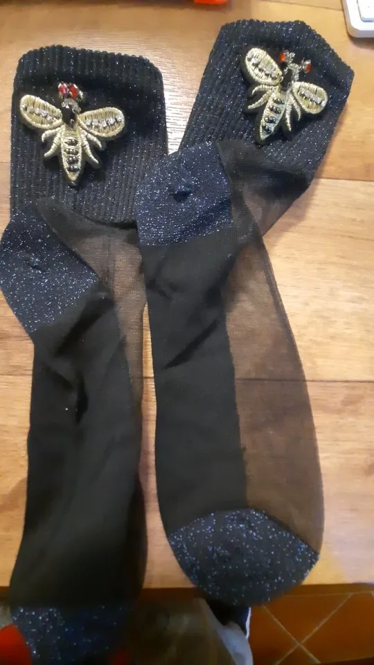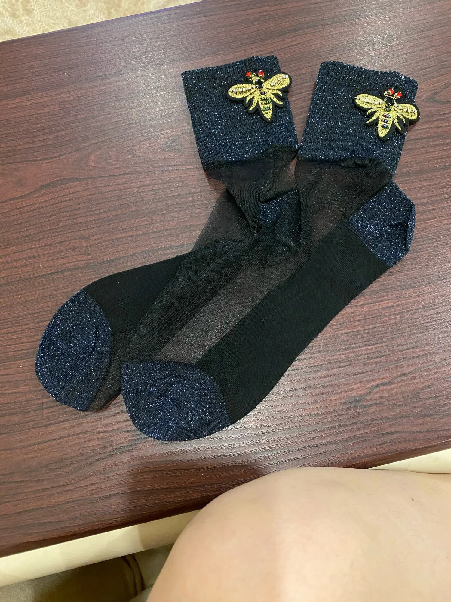 Новинка 2018, блестящие носки, новые модные носки с вышивкой и бисером, с серебряным отворотом, прозрачные эластичные Чулочные изделия