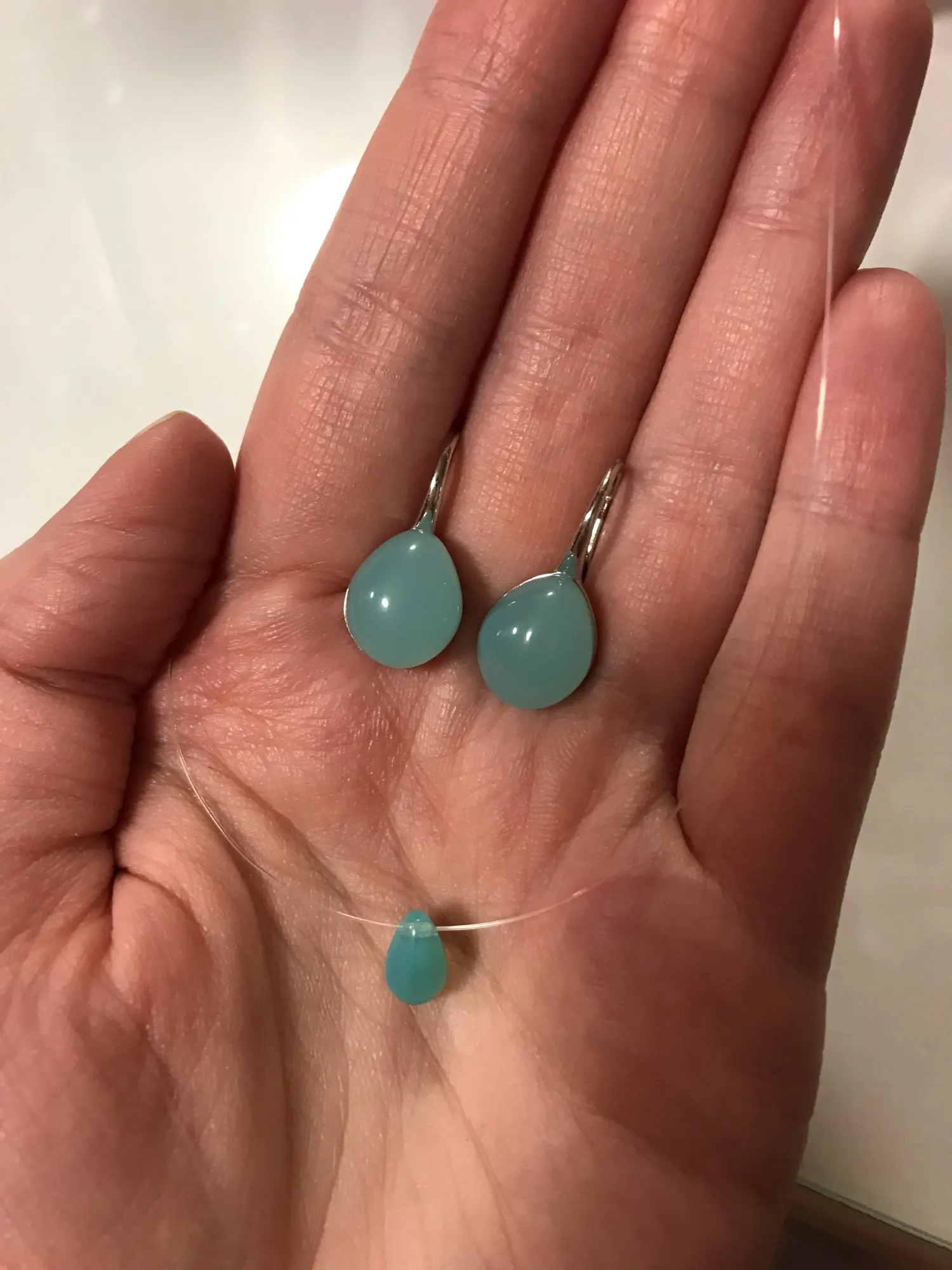 Все хорошо, но длинновато. У меня капля находится ниже ямочки на шее, а хотеоа чтобы была прям в ней. С продавцом не общалась. Цвет как на фото (брала красный).