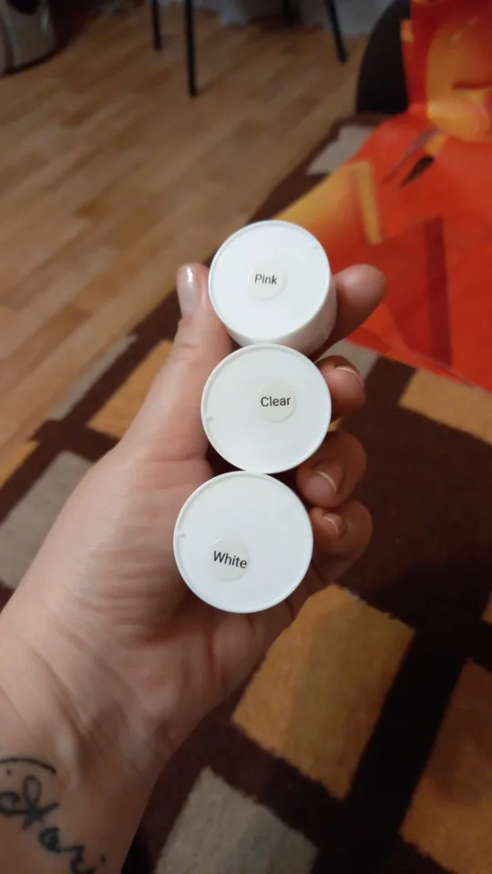 Прозрачного всегда меньше, его наверное не видно при разливе ;)! Дошли целыми. Долго. Без отслеживания. Бумажки с надписями (белый, розовый, прозрачный) приклеены на дно ;) Подписала сверху маркером. Продавцу спасибо !!! Почта- спасибо, что дождалась... и что не раздавили ничего!