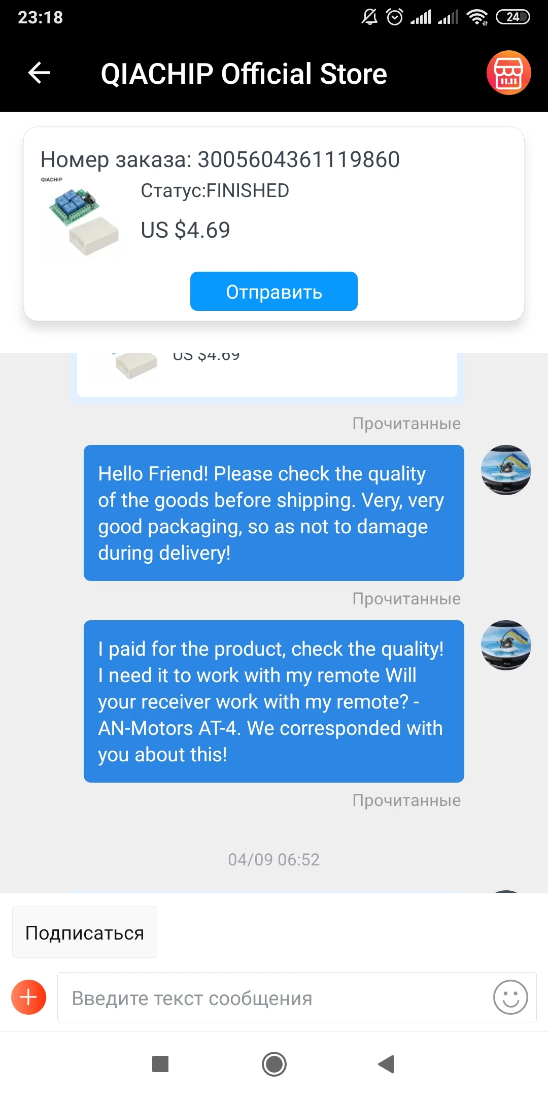 Трек номер посылки отслеживается , упаковано хорошо. У продавца уточнял информацию , подходит ли приемник к моим пультам. У меня пульты an-motors at-4 с частотой радиосигнала – 433 МГц. Динамический тип кодирования и отсутствие функции копирования сигнала на другие пульты обеспечивают надёжность прибора. Но этот приемник не подходит для динамического кода. Обратите на это внимание перед заказом!!! Приемник программируется на много разных режимов , то что нужно , но не для моих пультов. Принимаю заказы для жителей из Украины , тех кто сам не умеет , боится , или не хочет рисковать с обманщиками. Здесь их много , и у каждого свои методы обмана. Кому нужно что-то заказать с Али , звоните 050-658-13-69. Веду переговоры с продавцами , контролирую доставку, проверяю качество и т.д. При необходимости открываю спор и выношу продавцам мозг до решения вопроса. Мой email: denis.mikhailov@ukr.net