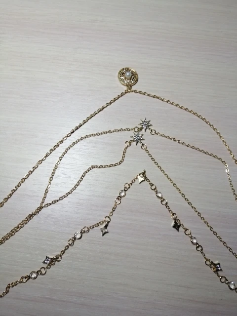 смотрится очень красиво,нежно,женственно.металл цвета под настоящее золото,посмотрим когда потемнеет.пришло просто в кулечке все запутанное,распутывала мин 30,но распутала