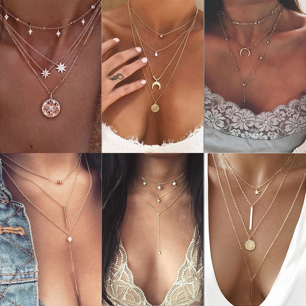 Ожерелье женское многослойное золотистое, с кисточками и кристаллами