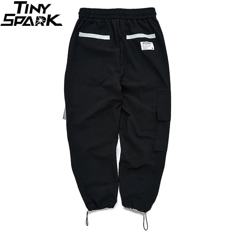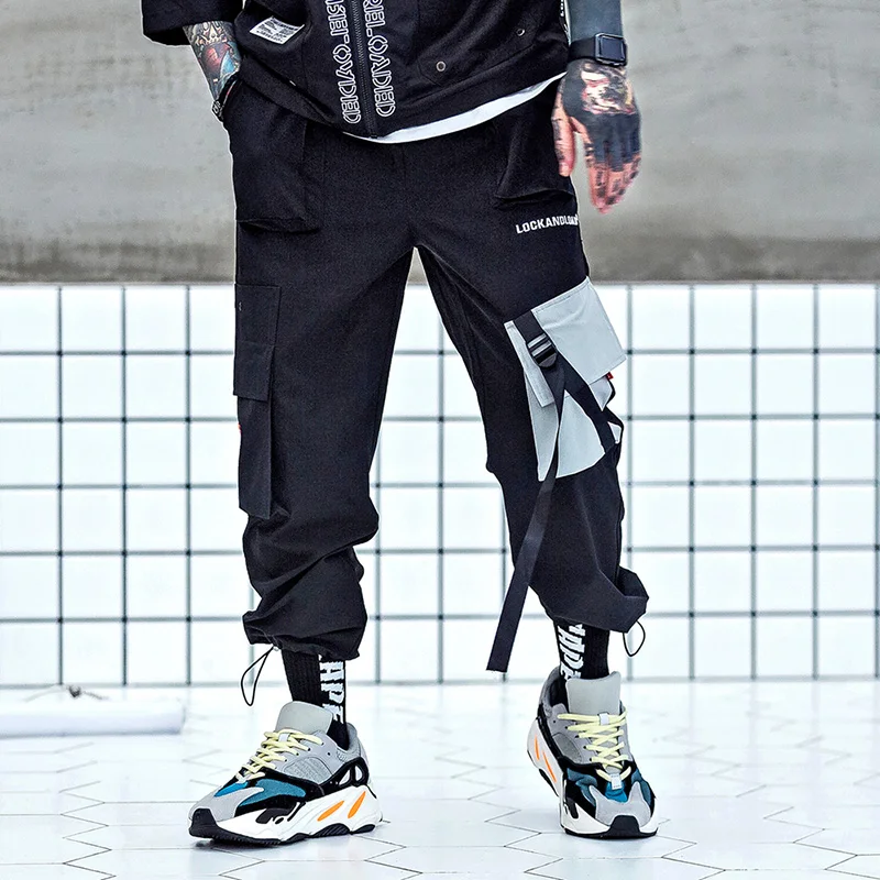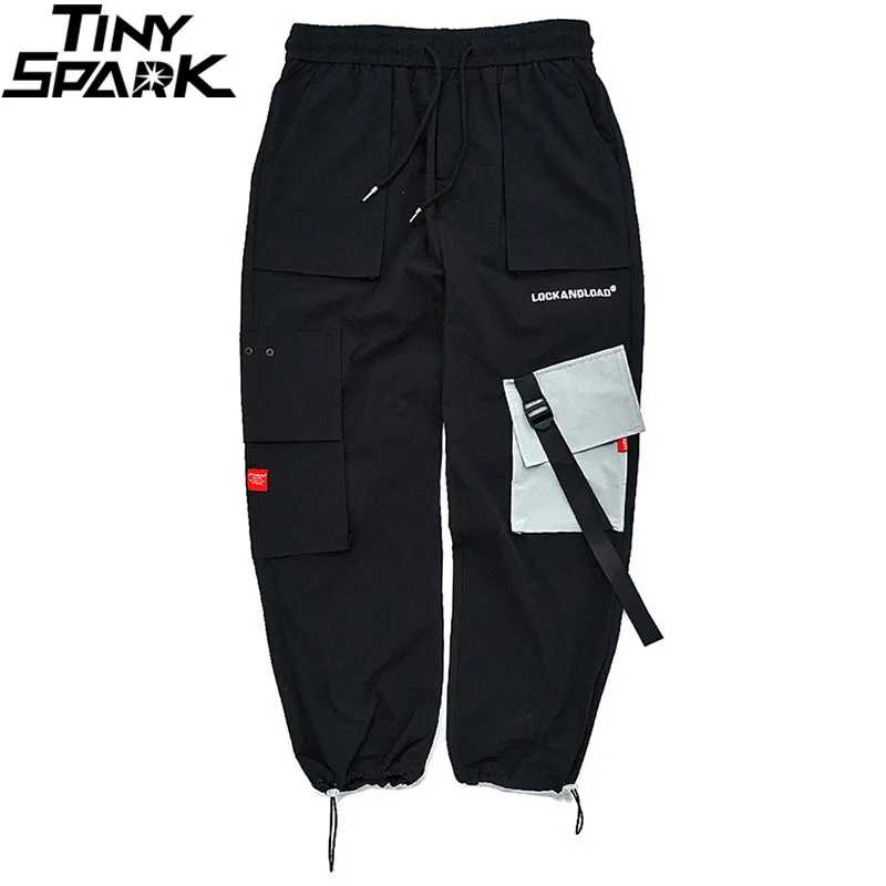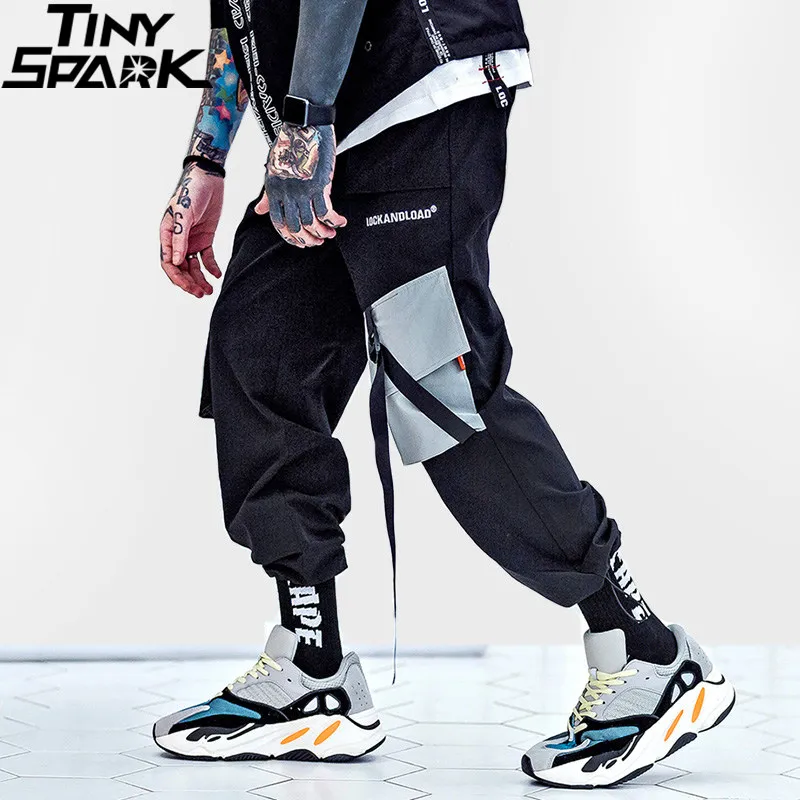 Мужские брюки-карго в стиле Харадзюку, шаровары с карманами, мешковатые тактические брюки с лентой, длиной до щиколотки, в стиле хип-хоп, 2020