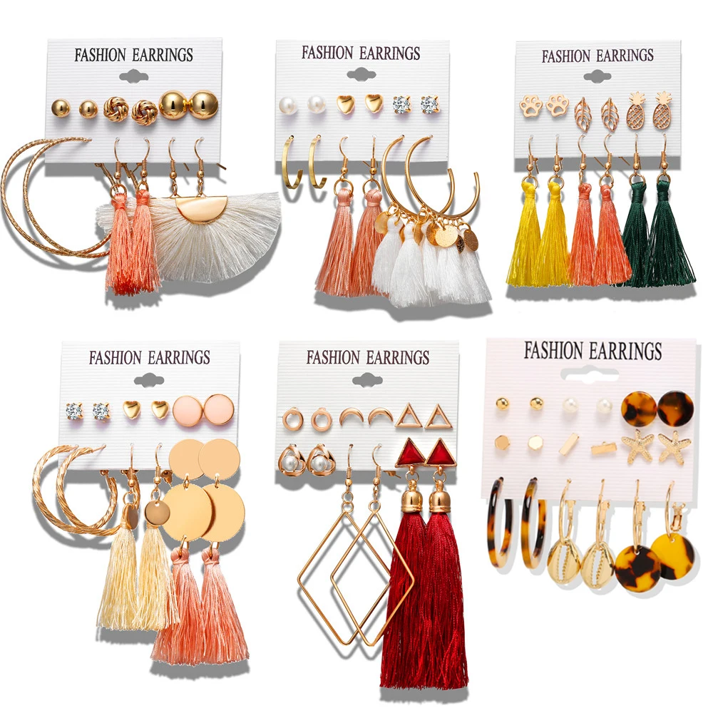 Женские Геометрические Висячие серьги, 17 км, 30, серьги с кисточками в богемном стиле, в стиле бохо, Комплект сережек для женщин
