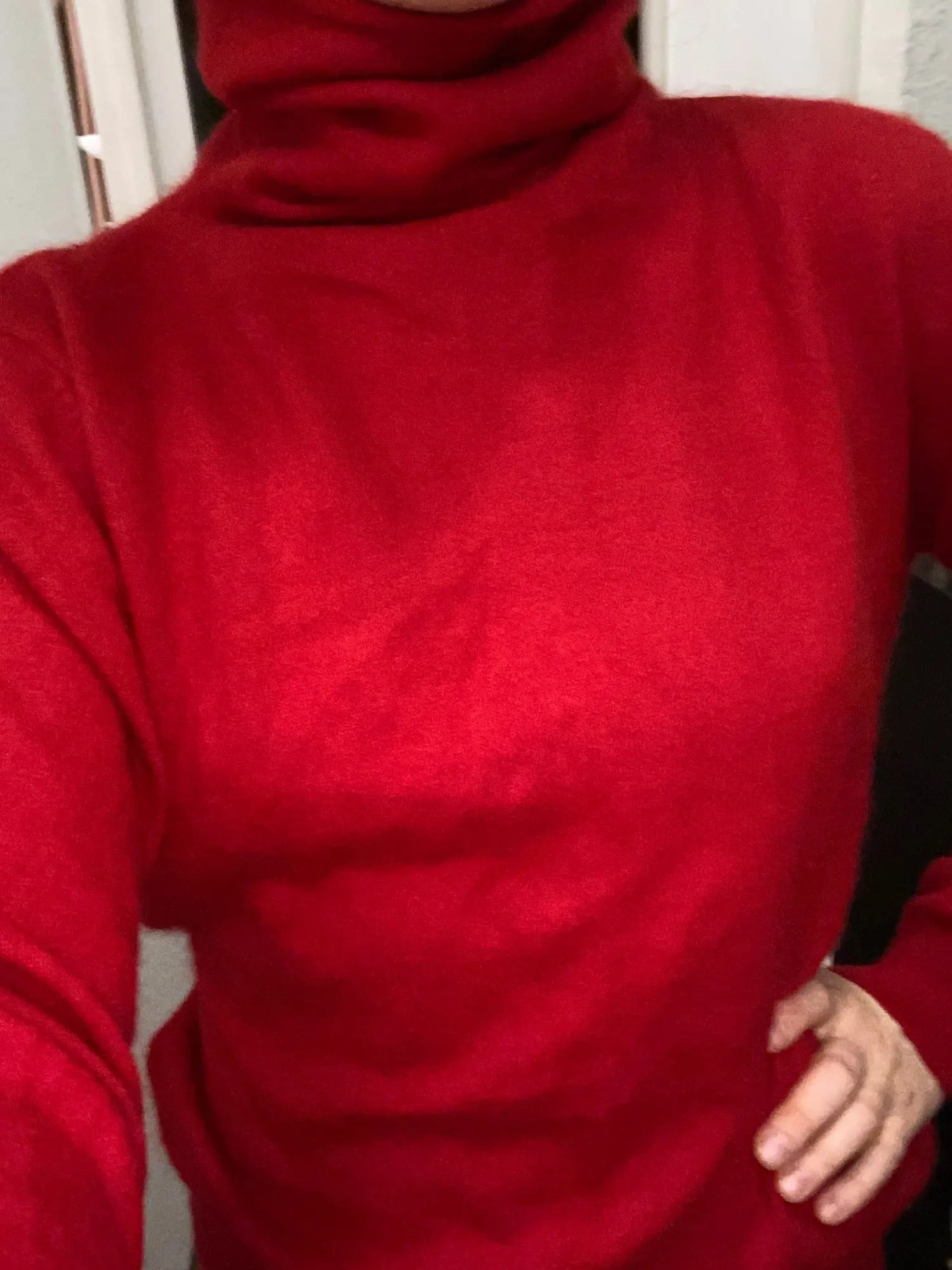 Заказ доставлен до Москвы за 3 недели, трек отслеживался. На параметры ОГ 94 и рост 158 см сел как надо. Цвет насыщенный красный. Свитер очень мягкий и теплый, не длинный.