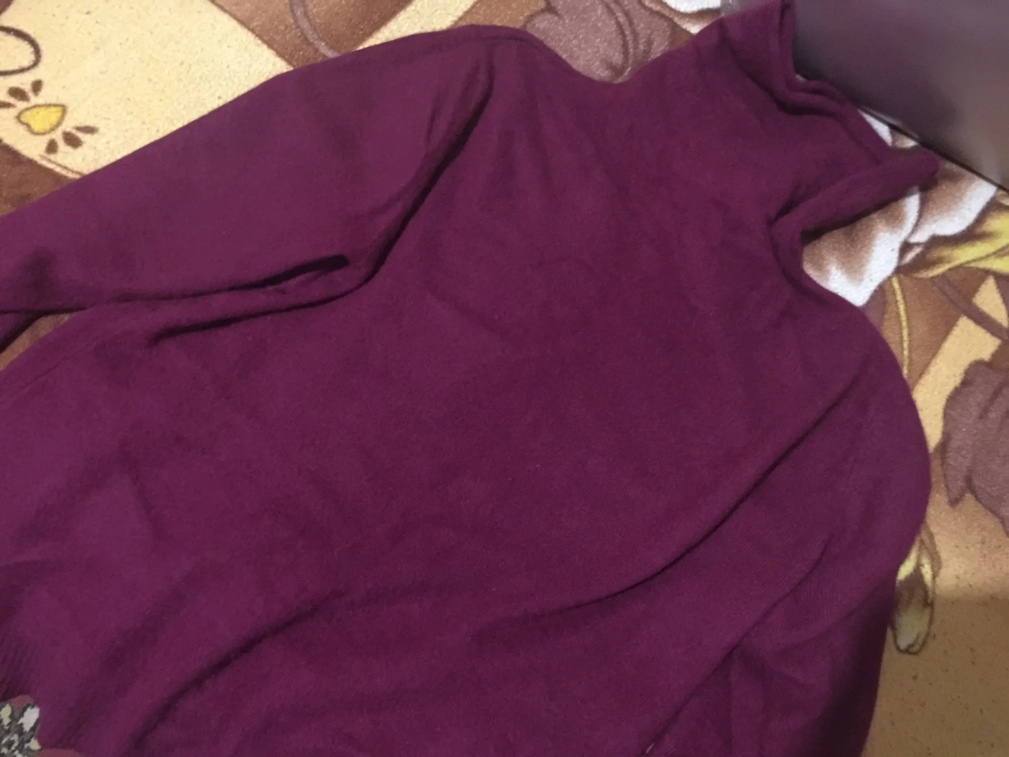 Свитер очень приятный , похож на настоящую ангору.Цвет осень красивый, фиолетовый.Единственный нюанс размер.Хотелось бы чуть побольше.на XL не дотягивает,маломерит.Сидит по типу свободной водолазки.Я бы в следующий раз брала на размер , а может и на два больше.