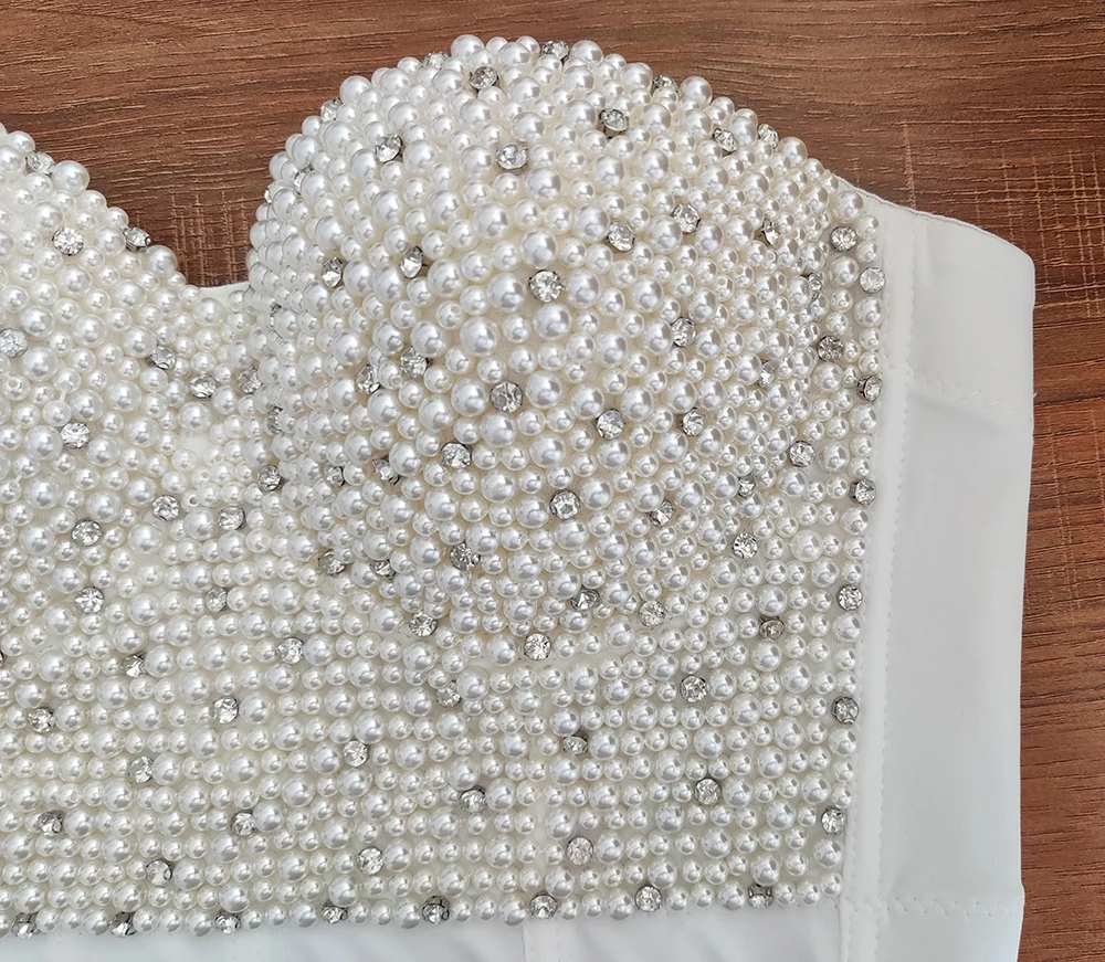 ❤Топ-бюстье изготовлен из высококачественного 93% полиэстера, 7% спандекса❤️ Это жемчужное бюстье ручной работы, укороченный топ-Бюстгальтер с белыми жемчужинами и разноцветными бриллиантами спереди делают вас привлекательным и гламурным.❤️ Регулируемый съемный плечевой ремень, дизайн пуш-ап, тонкая посадка для тела, он никогда не станет старомодным. Спинка с пятью рядами крючков и застежек, с силикагелем в полоску внутри, чтобы убедиться, что она не отвалится при носке.❤Отличный выбор для вечеринки, клубной одежды, вечернего платья, выпускного вечера, повседневной одежды, дня рождения, концерта, танцев, встречи выпускников, костюма на Хэллоуин, косплея, знаменитостей, подиума, И так далее, как вам нравится.