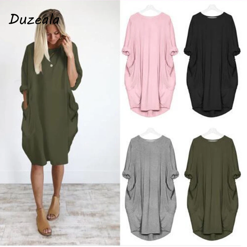 2021 Горячая Распродажа Осень Зима Женское модное свободное платье с карманом женское однотонное платье с вырезом лодочкой повседневные Длинные Топы платье размера плюс