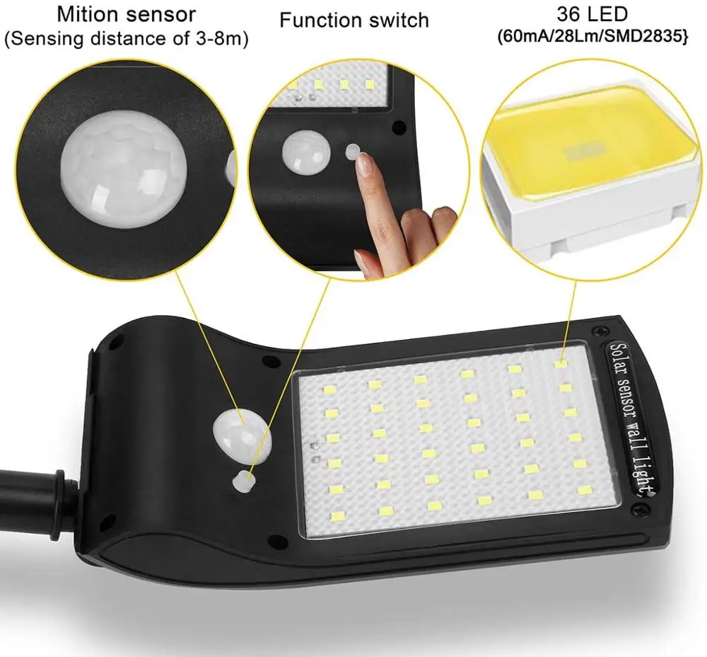 36 светодиодный s Солнечная Перезаряжаемые светодиодный солнечный светильник на открытом воздухе украшения сада лампа движения PIR Сенсор Ночной Настенный фонарь безопасности светильник(1 шт. в упаковке)