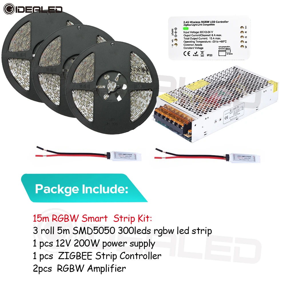 Умный набор светодиодных лент RGBW, контроллер ZIGBEE LED, диммер постоянного тока, 12 В постоянного тока, водонепроницаемая лента, набор совместимый с Alexa ECHO Plus Home Zll светильник