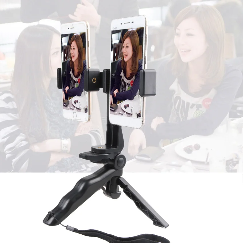 Настольный мини-штатив для селфи с 2 зажимами и держателем для мобильных телефонов
