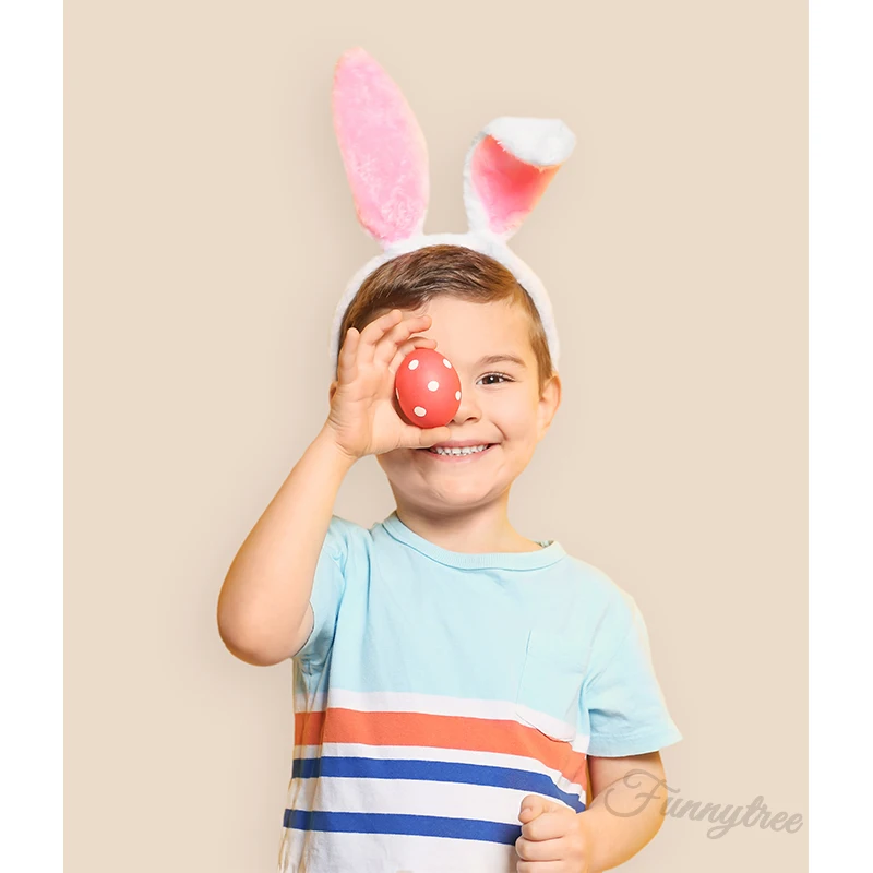 Фон Funnytree с розовым кроликом и пасхальными предметами, весенний...