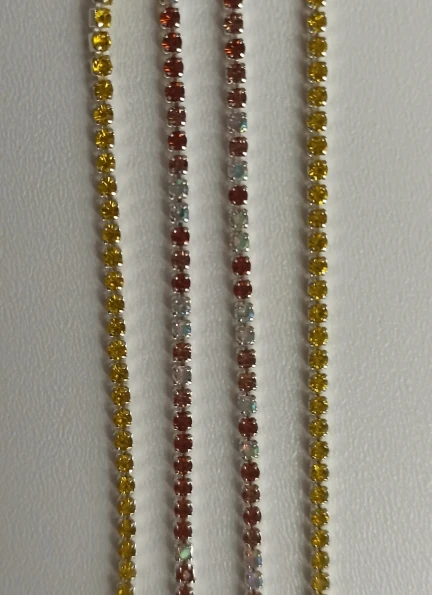 Цепочка для стразы, стеклянная, с серебряным дном, 17 цветов, 1 ярдшт