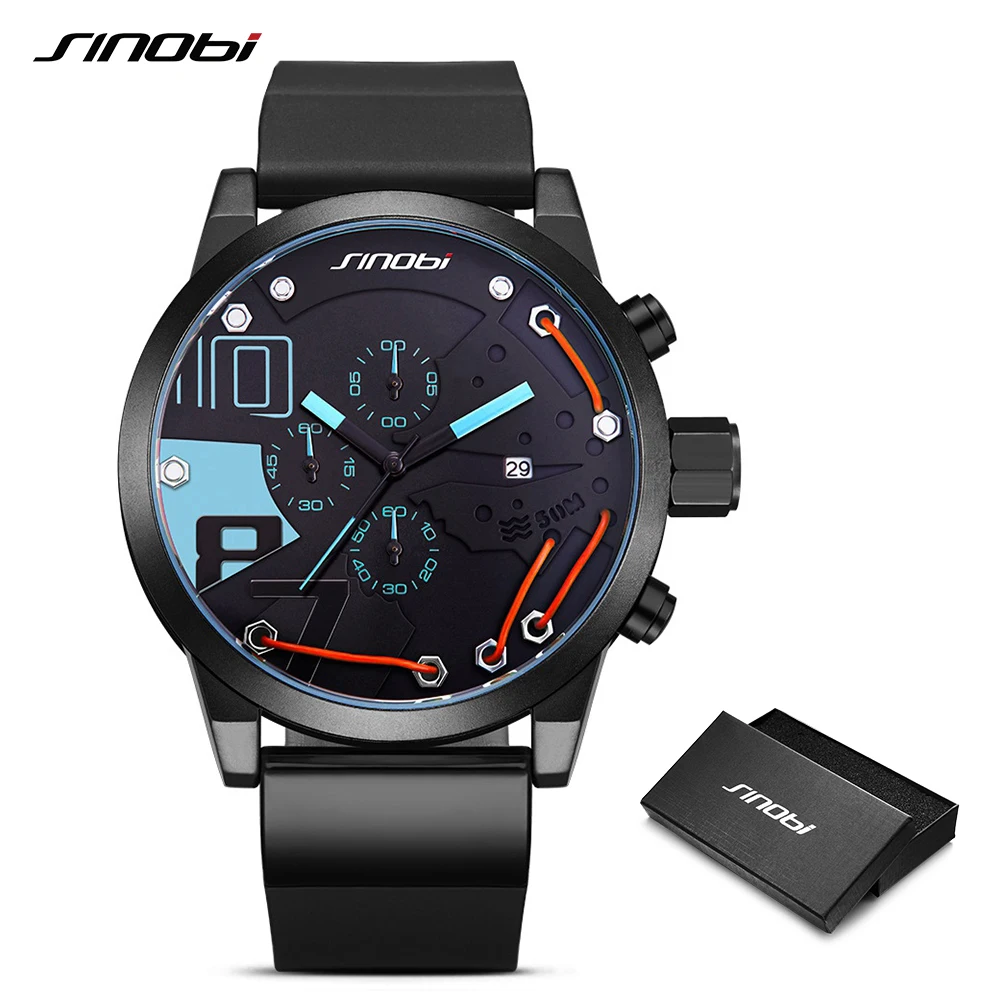 2020 металлический провод лучший бренд многофункциональные полностью Стальные кварцевые часы Sinobi гоночные спортивные мужские часы с хронографом мужские часы