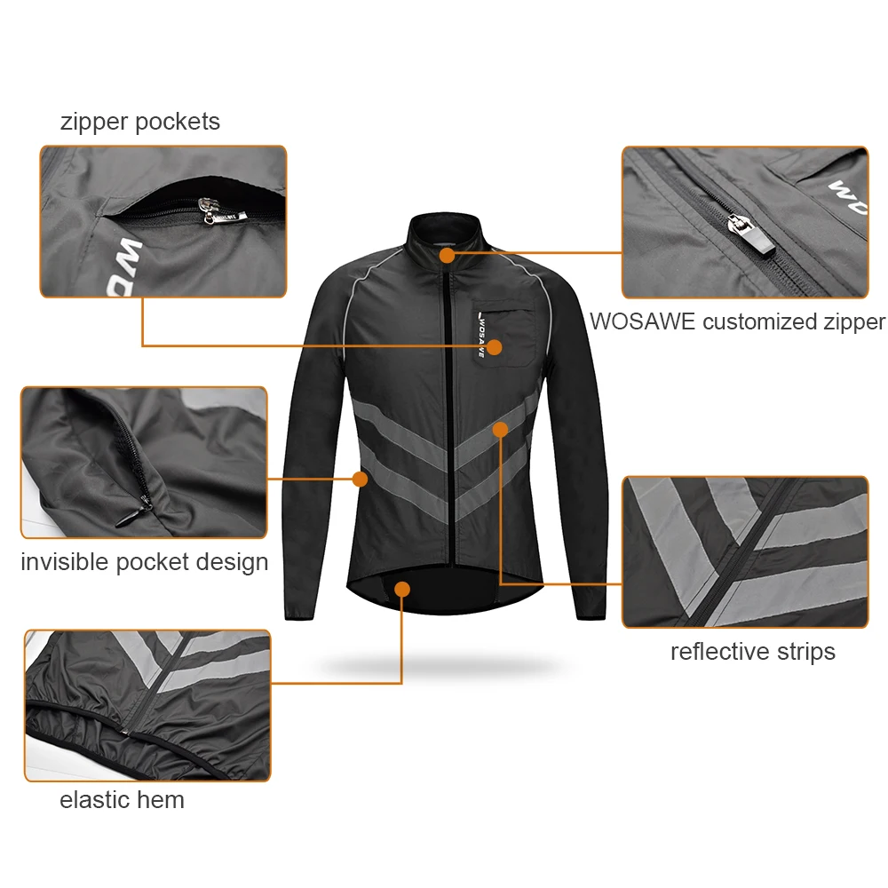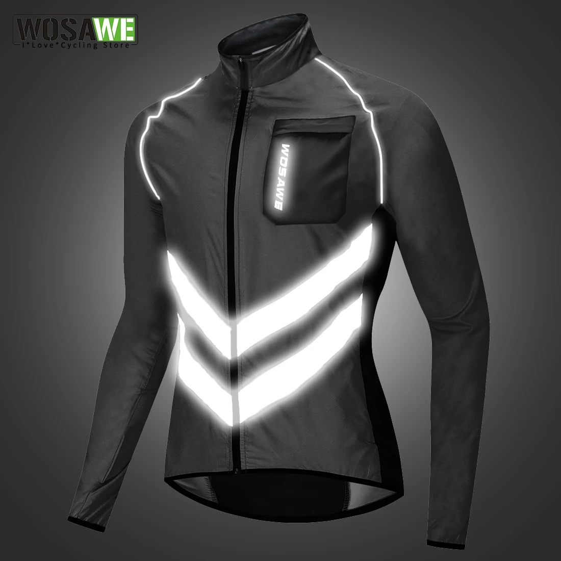 Светоотражающая куртка WOSAWE, велосипедная ветровка с длинным рукавом и защитой от ветра, водонепроницаемая быстросохнущая Джерси для горных велосипедов, ветровка