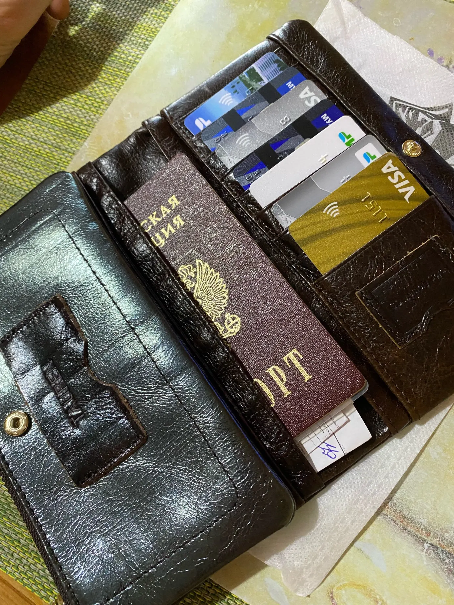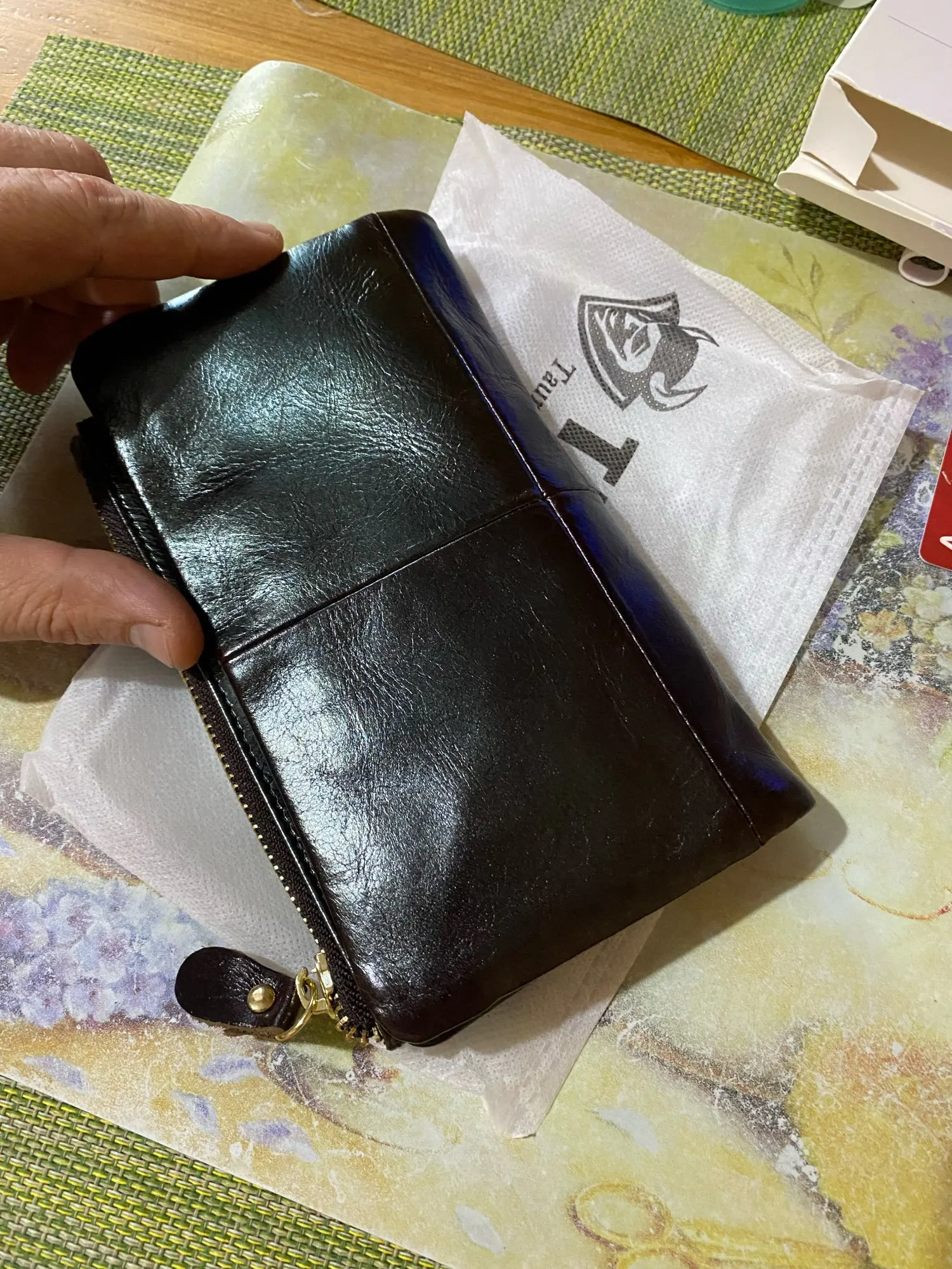 Мужской клатч из натуральной вощеной кожи, вместительный, с несколькими отделениями для карт, в стиле ретро