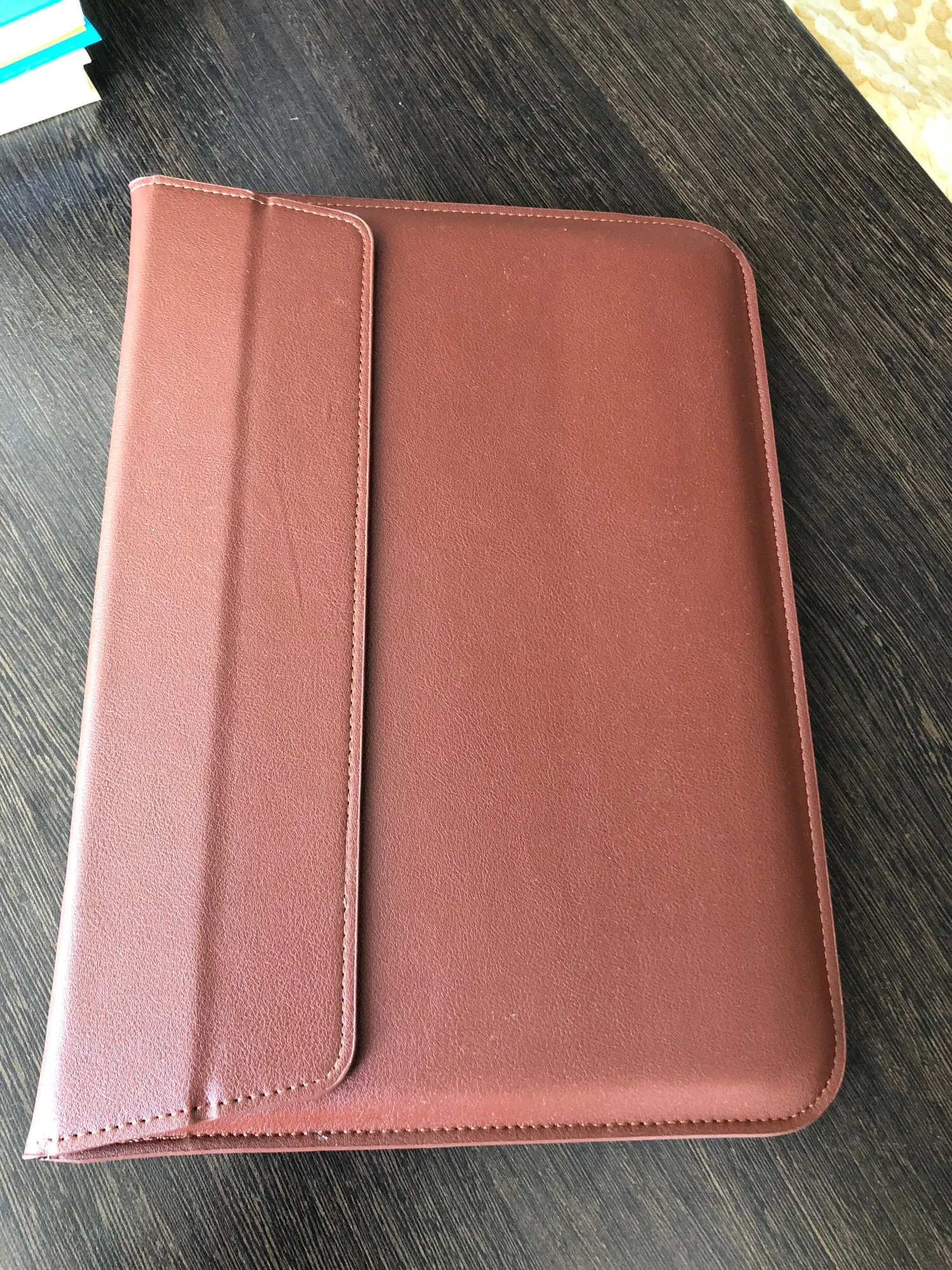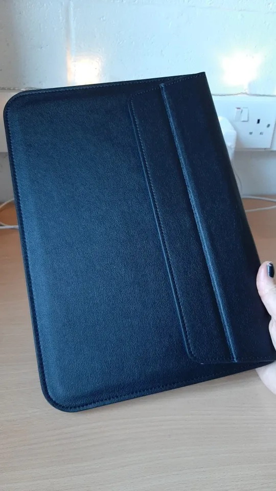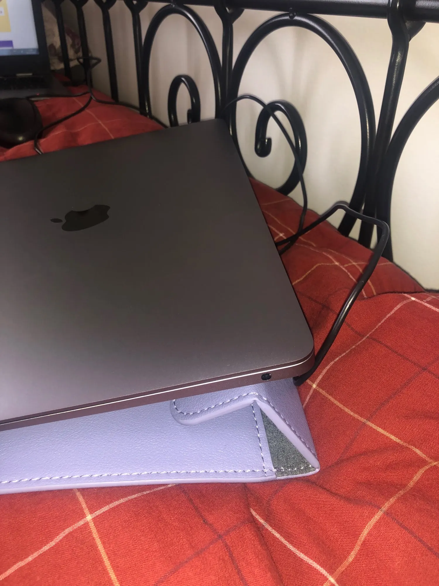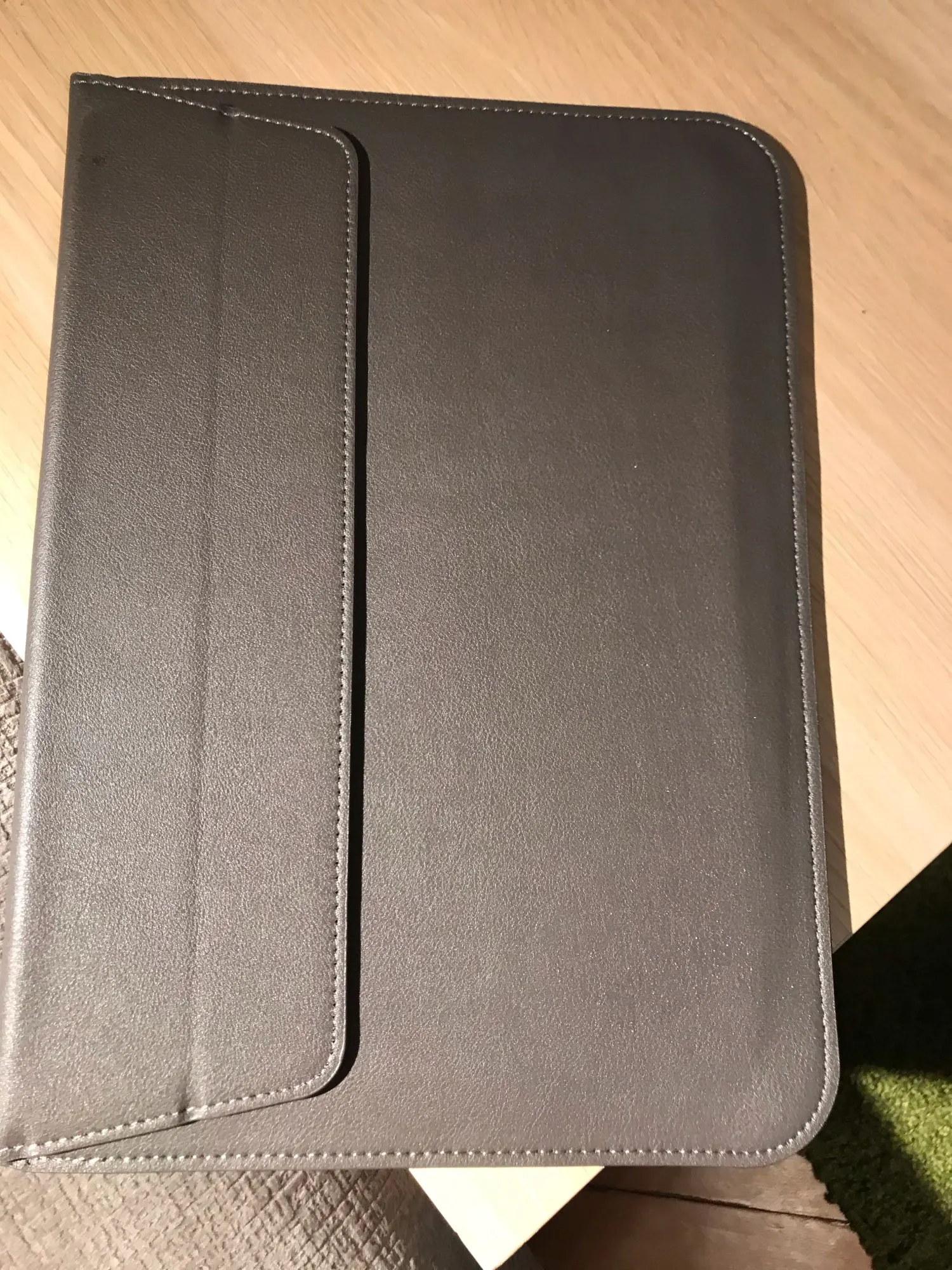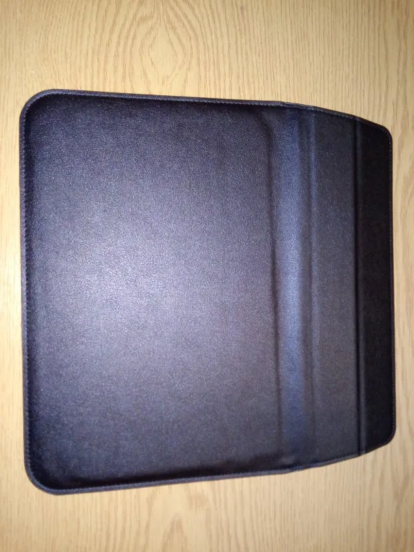 Чехлом доволен. Выглядит отлично, строки ровные и без торчащих ниток. Удобно работать на ноутбука с такой подставкой, теперь нет нужды ставить под ноутбук стопку книг или еще что либо.