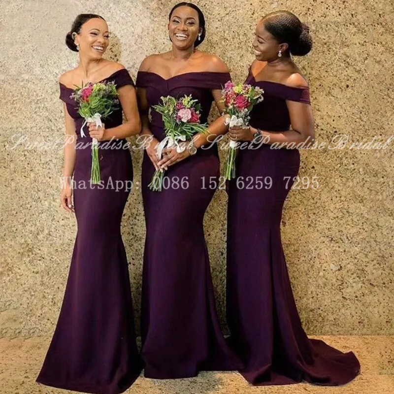 Фиолетовые платья подружки невесты с русалочкой для африканских женщин, длинное платье с открытыми плечами для свадебной вечеринки, платье подружки невесты на шнуровке, длина до пола, индивидуальный заказ до 100