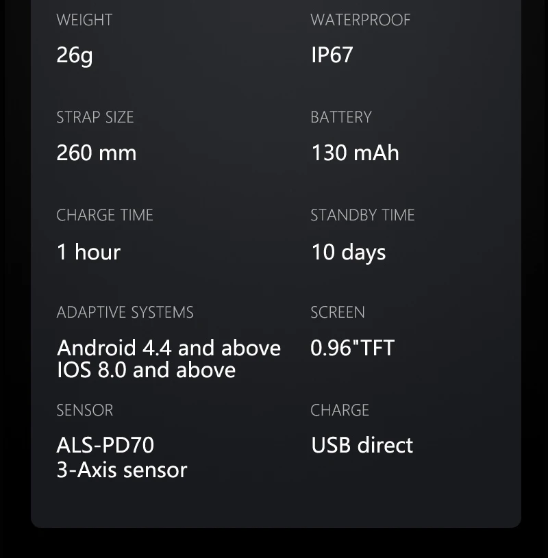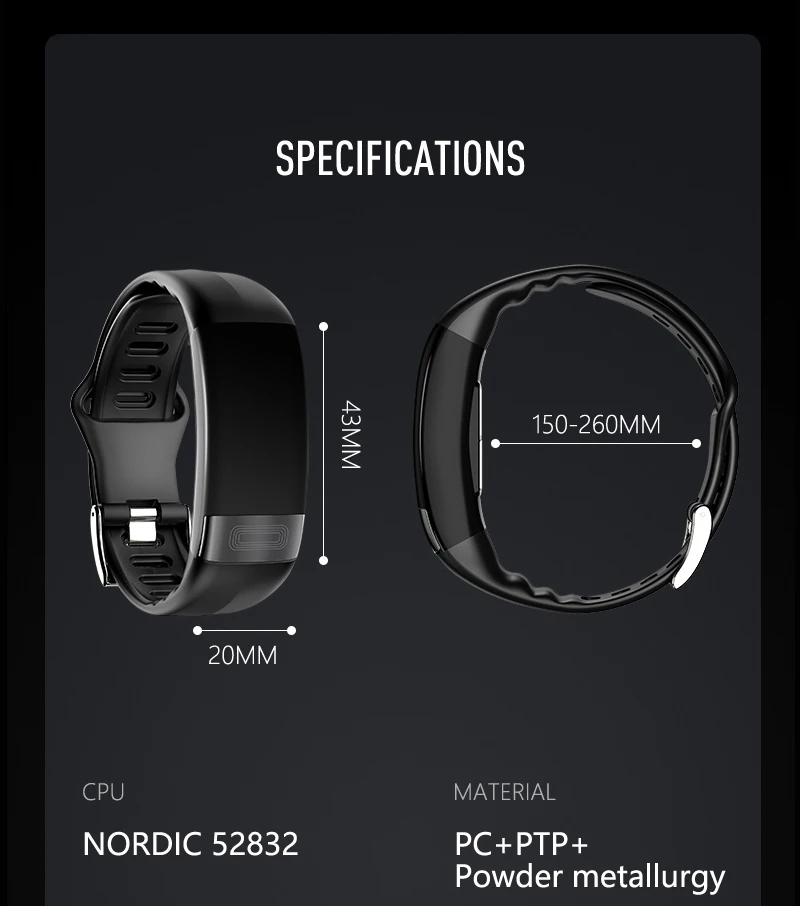 Примечание: 1, снимите ремешок, заряжайте с помощью металла, не нужен зарядный кабель. 2, браслет поддерживает только английский, приложение имеет несколько языков.: 3, пожалуйста, следуйте принципу использования, не используйте для измерения воздуха, это не сфигмоманометр. 4, данные только для справки и не предназначены для использования с медицинскими данными. Следует с осторожностью размещать пациентов с гипертонией.