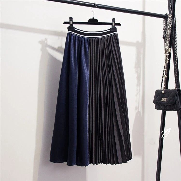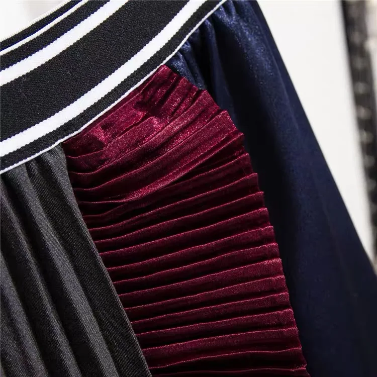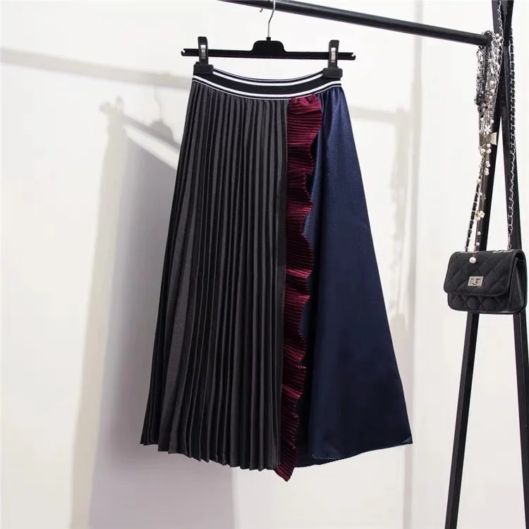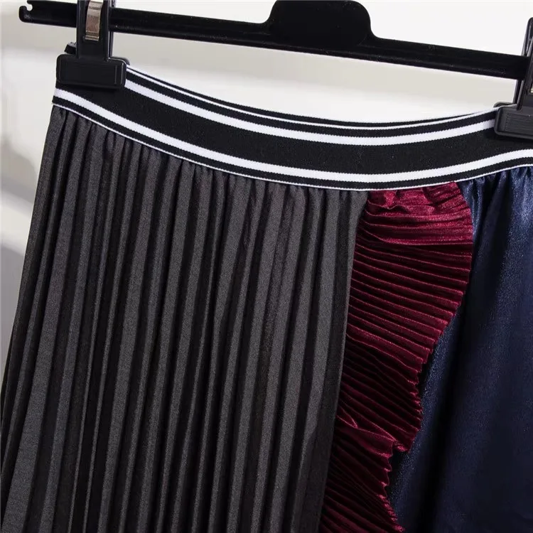 Женская юбка с оборками Marwin, Мягкая юбка до середины икры контрастных цветов в европейском стиле, зима 2019