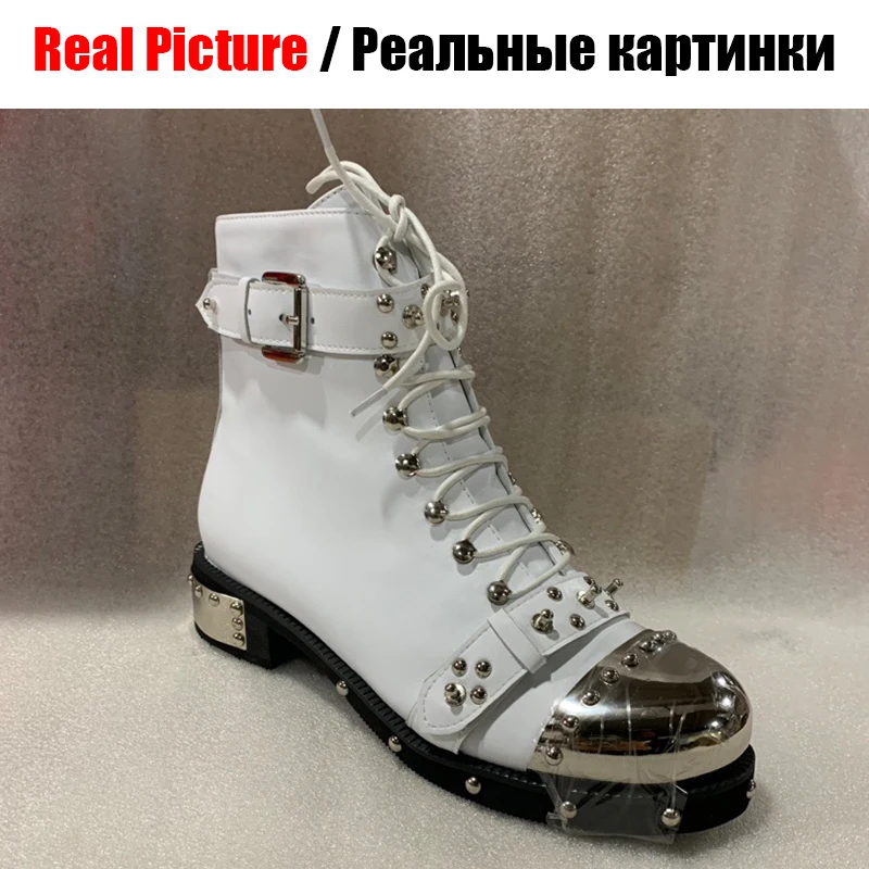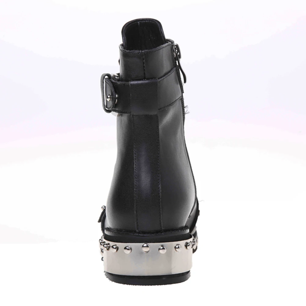 SARAIRISНовинка; Большие размеры 34-43; Обувь из натуральной кожи на молнии с металлическими украшениями и заклепками; Женские Повседневные Вечерние ботильоны; Сезон зима-весна
