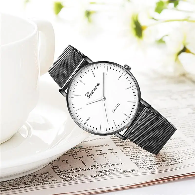 Relogio Feminino женские часы из Женевы роскошный сетчатый ремешок из нержавеющей стали аналоговые кварцевые наручные часы женские часы из розового золота
