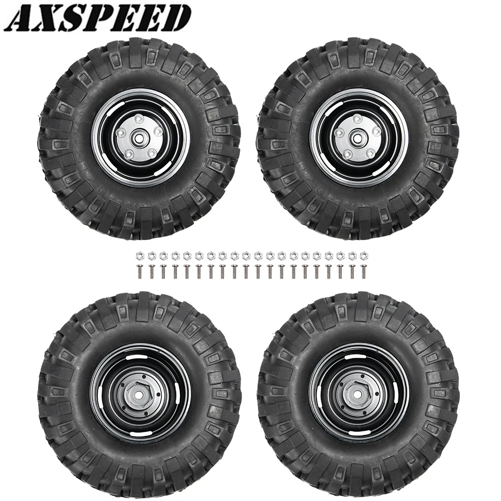 Металлические колесные диски AXSPEED 1,9 дюйма и резиновые шины 108 мм, шкура в комплекте для радиоуправляемого гусеничного осевого SCX10, колеса для ралли на радиоуправлении, запчасти для 1/10