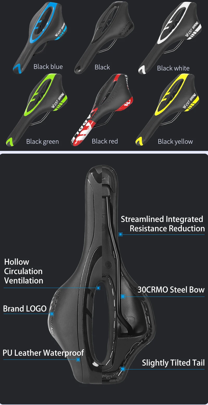 WEST BIKING велосипедное седло, водонепроницаемое Велосипедное Сиденье, износостойкое, из искусственной кожи полые детали для шоссейного велосипеда, Велосипедное Сиденье, велосипедное седло