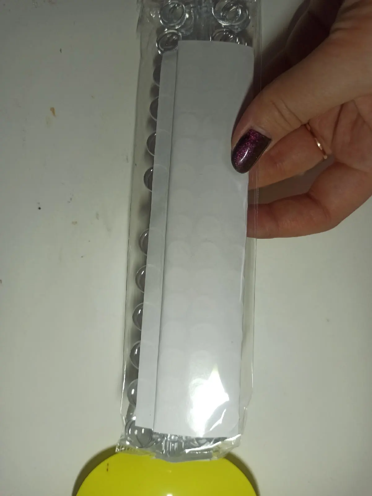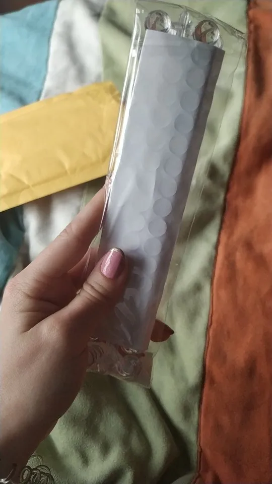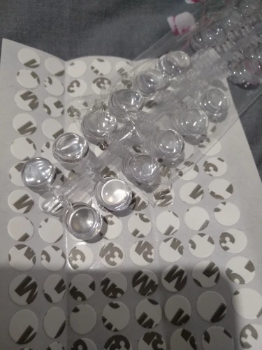 Товар очень классный и полезный, но скотч который в комплекте, совершенно бестолковый. Лучше клеить на что-то свое. Так же если крышка лака с выпуклостью, то тут он точно не прикоеится. В наборе. Их много и хватит на все лаки