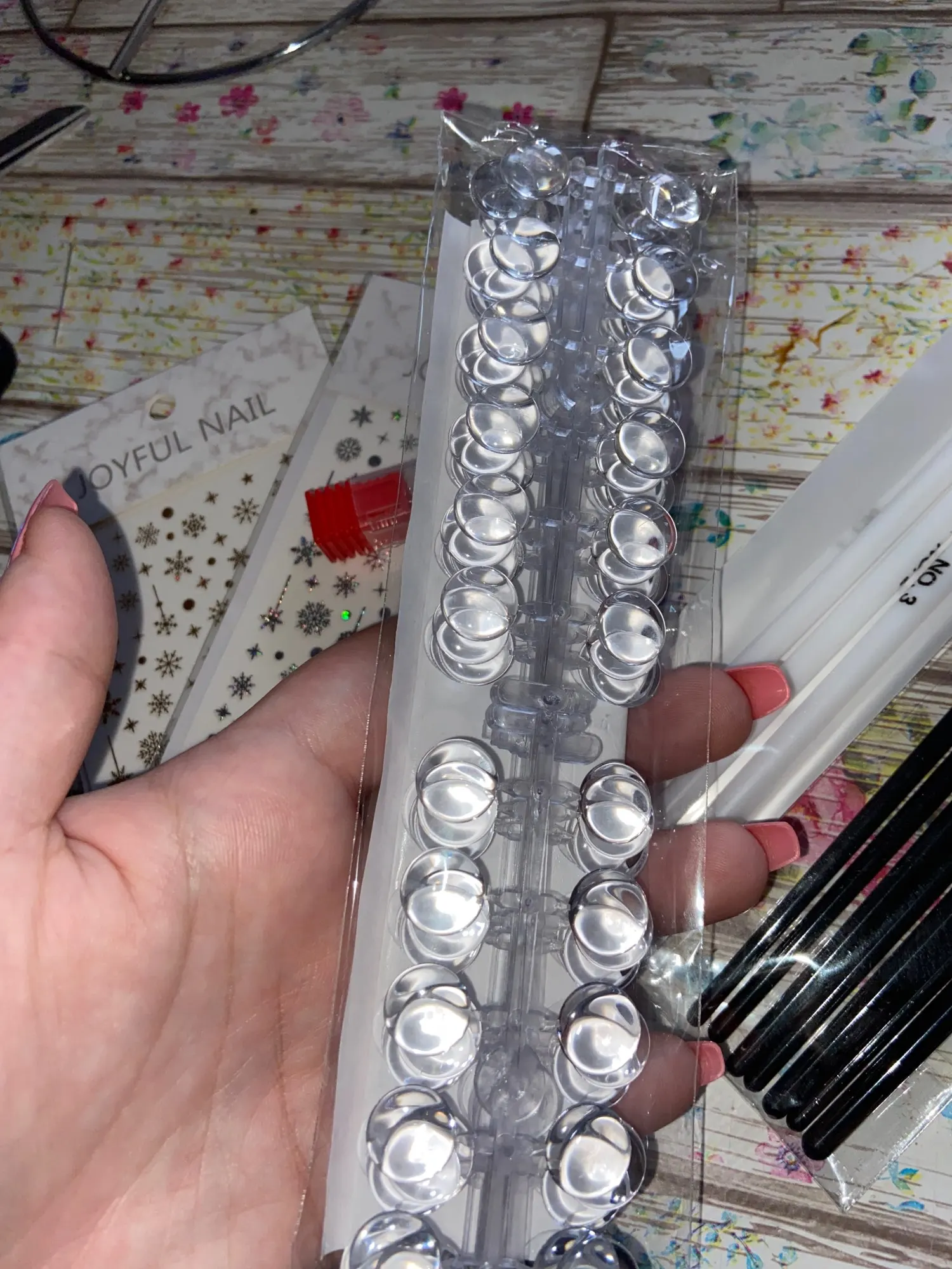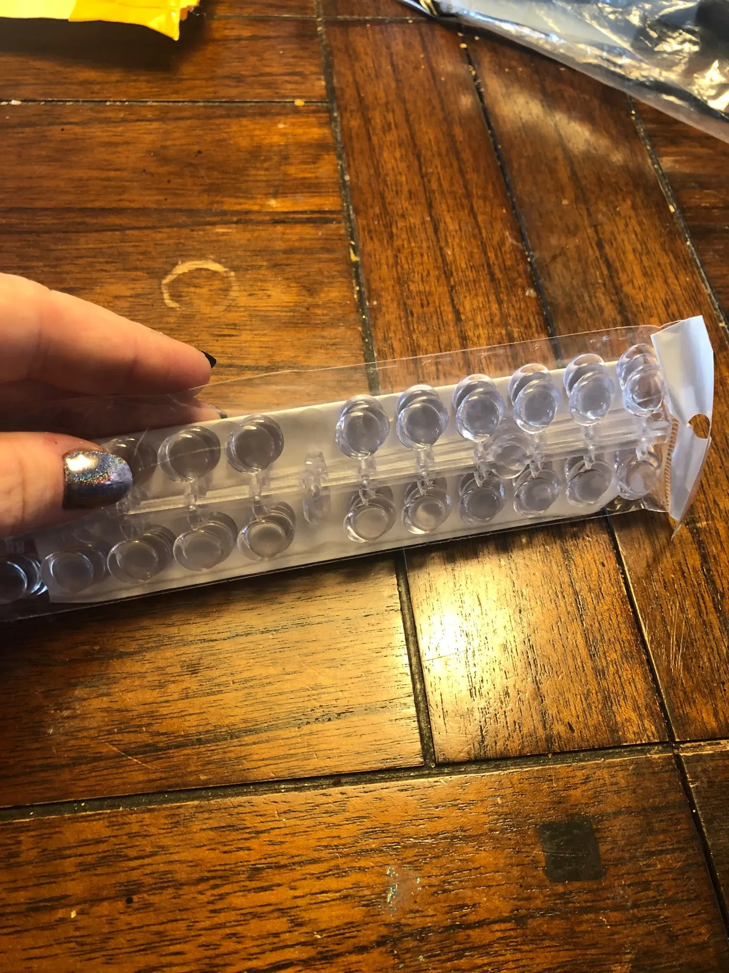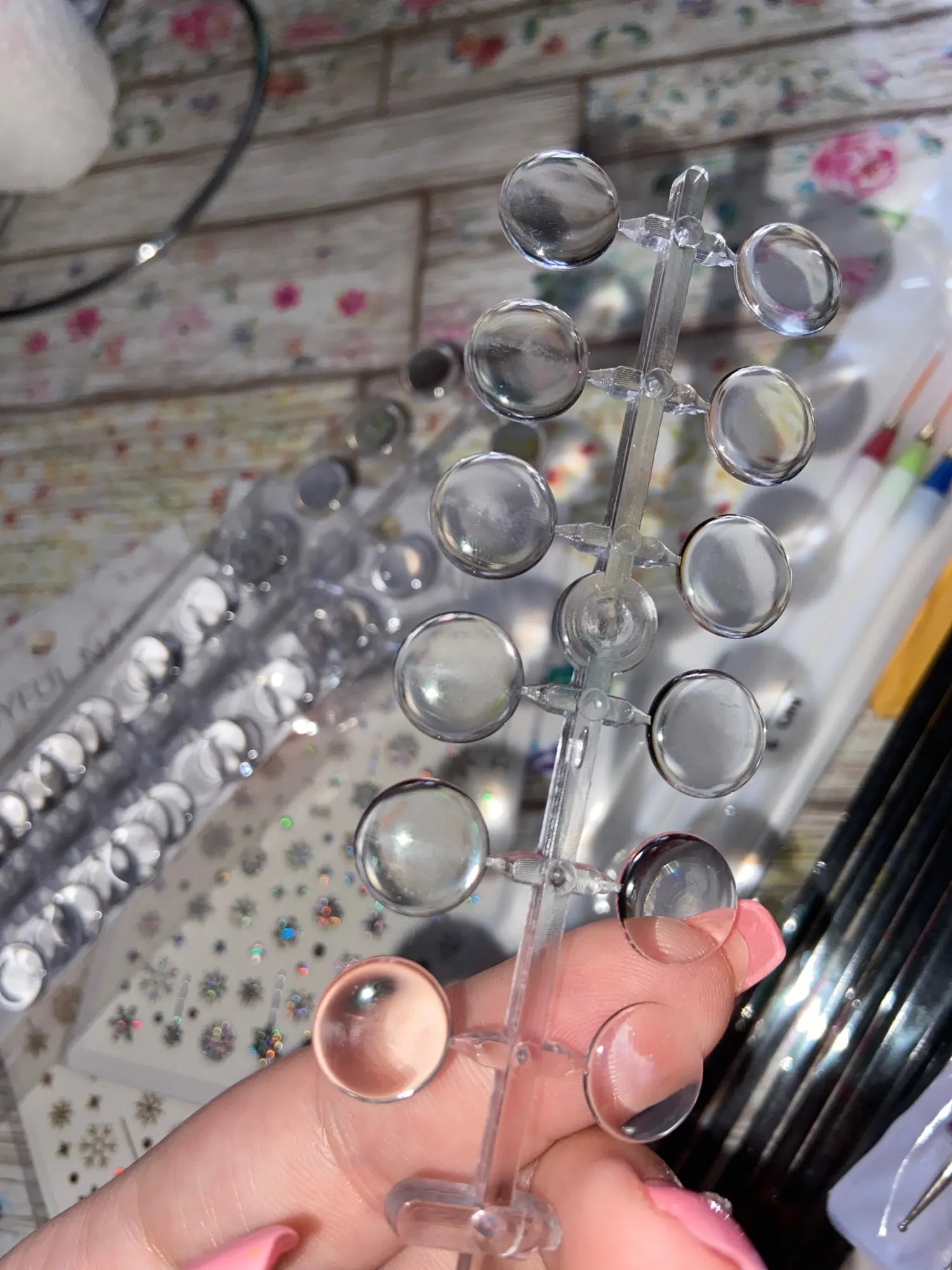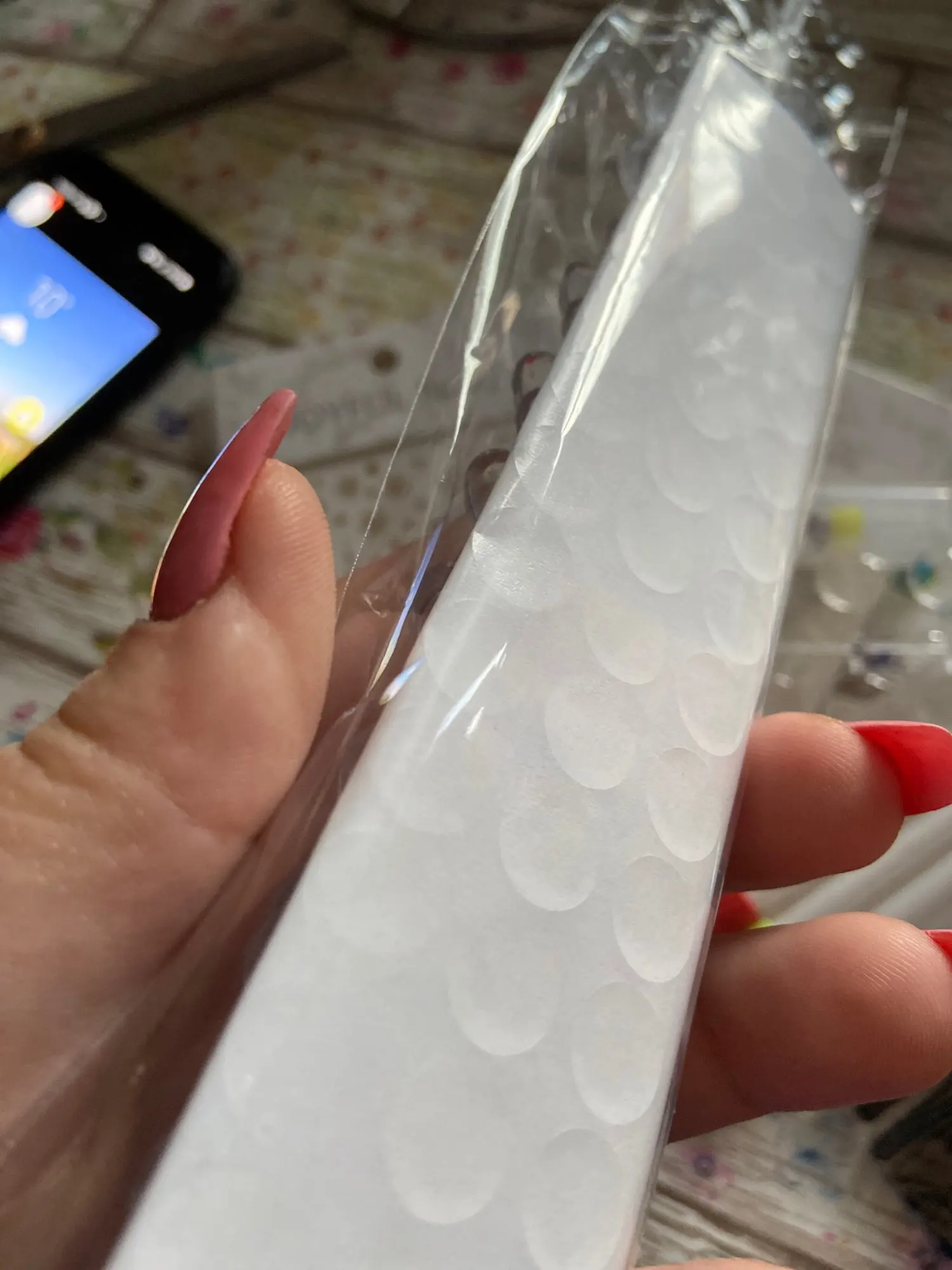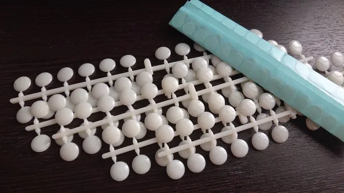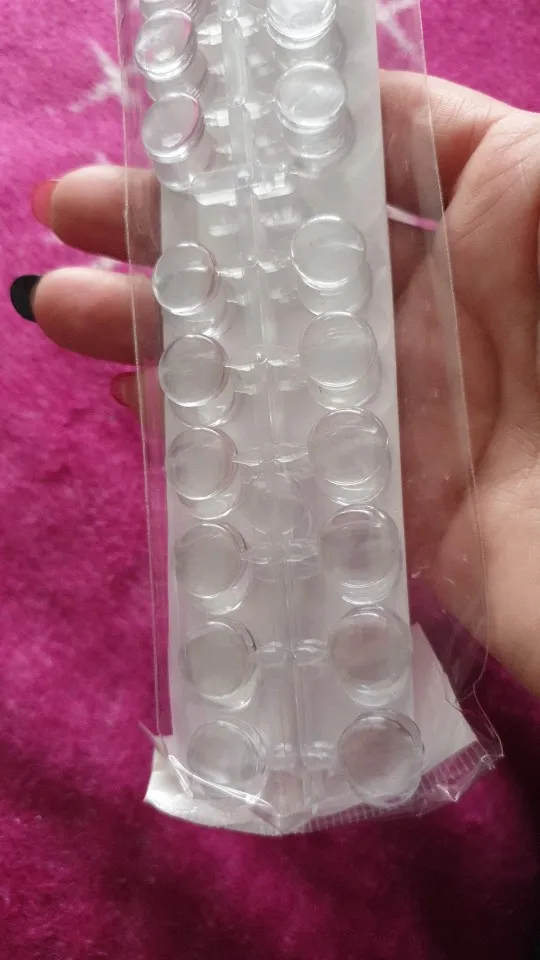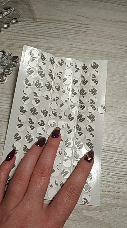 Пришла посылка достаточно быстро. Все целое, качество хорошее. Клей на кругляшках-скотчах хороший, если поверхность крышки чистая и ровная, то просто намертво клеится. Гель лак на кругляши ложится хорошо, отламываются от основания достаточно просто. Заказом довольна