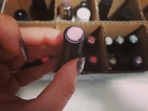 Очень практично надеть цвет на крышку лака. С другой стороны, липкие таблетки настолько маленькие, что их не очень легко снять... Таким образом, клей точка вместо, и это никель