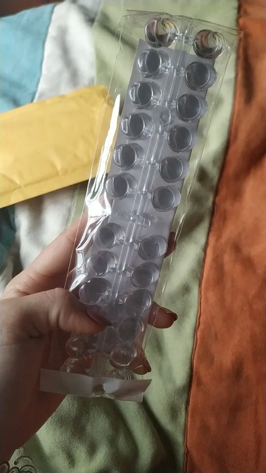 Товар очень хорошо упакован и, как результат, не поврежден. Выглядит точно так же, как на фото. Размер идеально подходит для колпачков для бутылок, но он имеет вмятину, поэтому мне придется решить, как приклеить его к бутылке. Было бы гораздо лучше, если бы спина была плоской.
