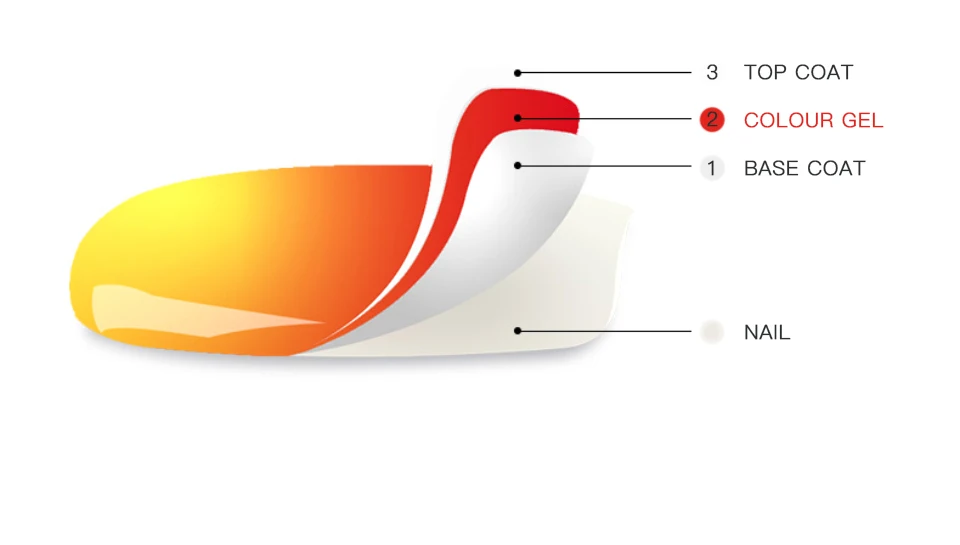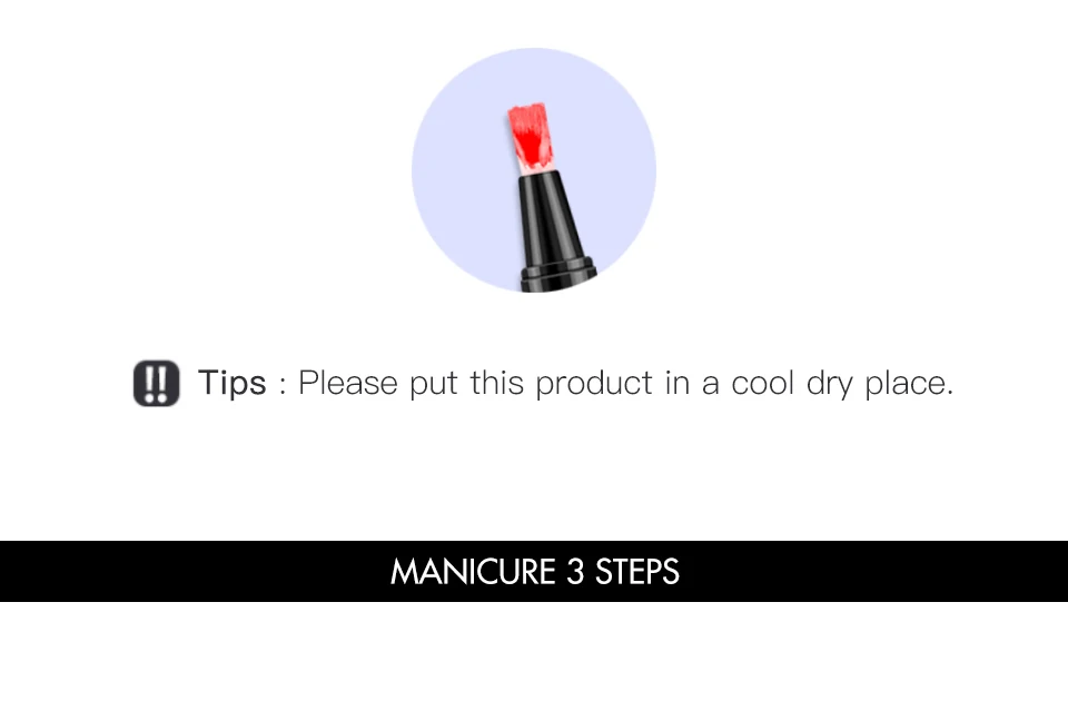 Шаг 1. Очистите ногти, затем подрежьте поверхность ногтя как при обычном маникюре. Шаг 2. Полностью встряхните лак, это поможет сбалансировать цвет лака. Шаг 3. Сначала нанесите Базовое покрытие, чтобы увеличить стойкость лака, закрепите с помощью УФ-лампы или светодиодный Ной лампы. (Необходимо)! Шаг 4. Нанесите непосредственно на лак, высушите с помощью УФ-лампы в течение 2-3 минут или высушите светодиодный Ной лампой в течение 60 секунд; При высыхании нанесите 2-й слой и снова просушите УФ-лампой или светодиодный Ной лампой. Шаг 5. Нанесите съемный верхний слой, который может сделать цвет более сияющим, а затем закрепите УФ-лампой или светодиодный Ной лампой. Шаг 6. Удалите липкую поверхность хлопком, смоченным очищающим средством.
