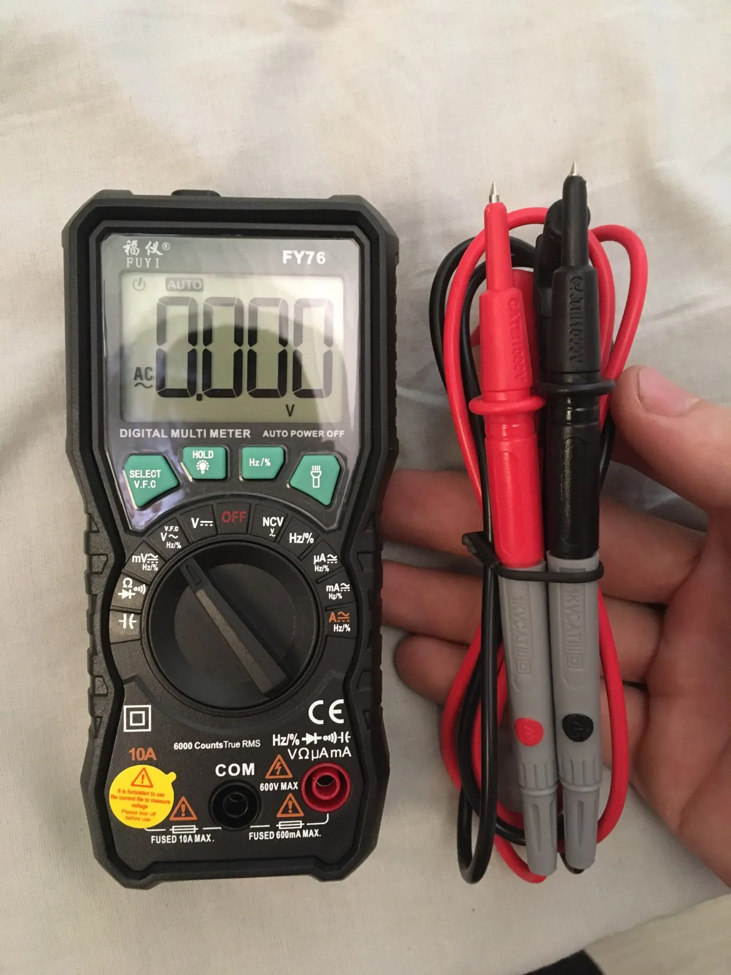 доставка во Владивосток почти за месяц. мультиметр приехал коробке и пупырке, все целое. покупал для бытовых домашних нужд, поэтому какие-то особенности его рассказать не могу, все имеющиеся функции работают, фонарик слабенький, проверка проводов в стенах работает если они не глубоко (на включенную микроволновку так вообще сильно "ругается" с расстояния ). щупы огромные (по сравнению со старым китайским ноунейм мультиметром), провода у щупов пластиковые толстые и не очень гибкие на морозе скорее всего лопнут.