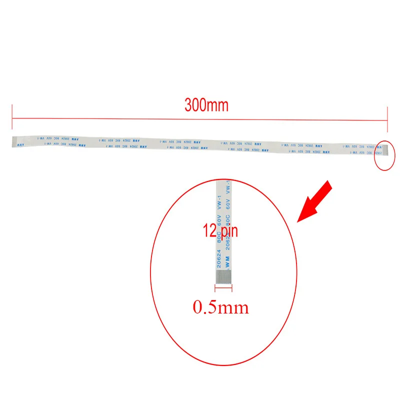 Кабель FFC 12-контактный 0,5 мм шаг 30 см 300 мм Длинный односторонний кабель FFC 12-контактный 1 шт.