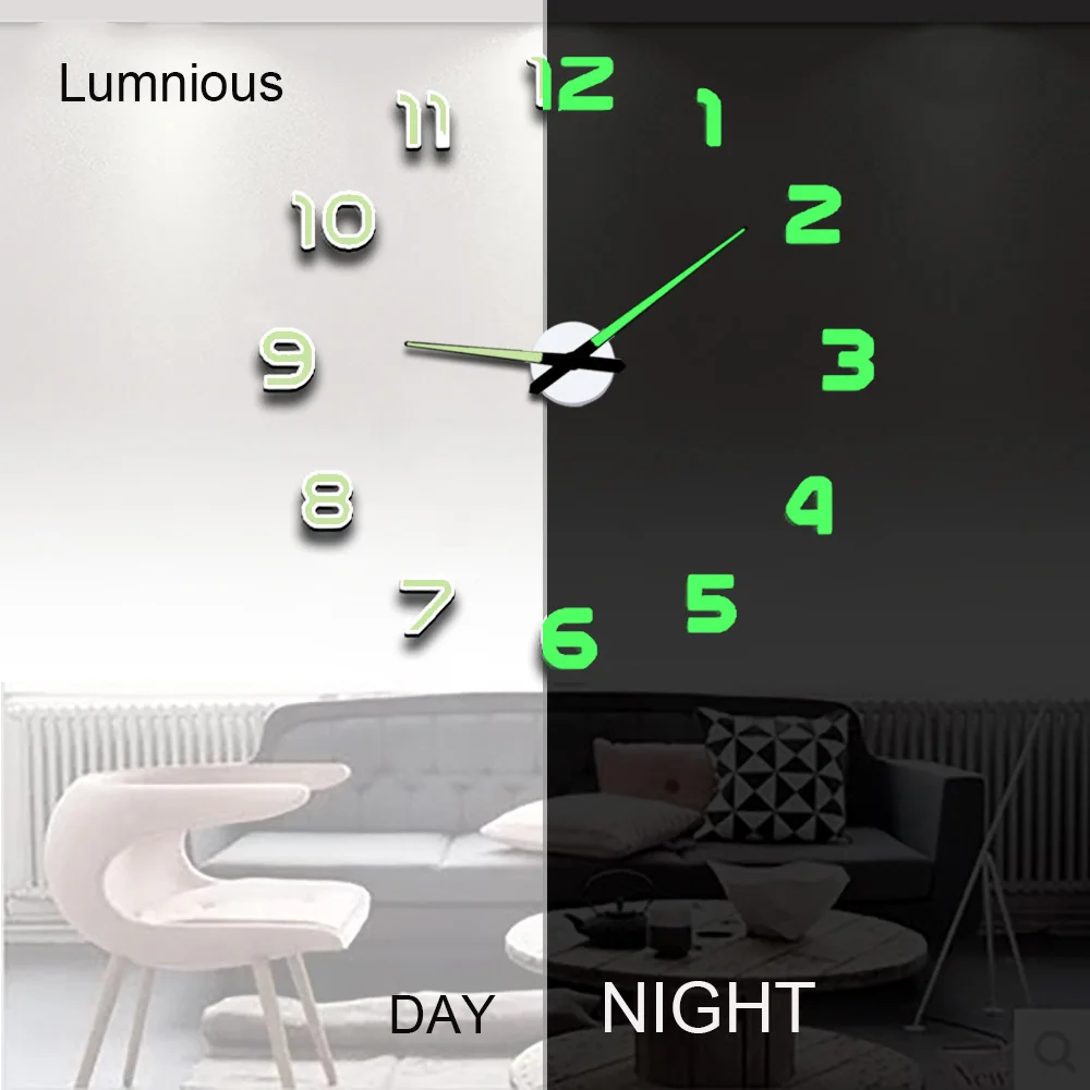 3d светящиеся настоящие большие настенные часы, зеркальные наклейки, сделай сам, для гостиной, для домашнего декора, модные часы, кварцевые, большие