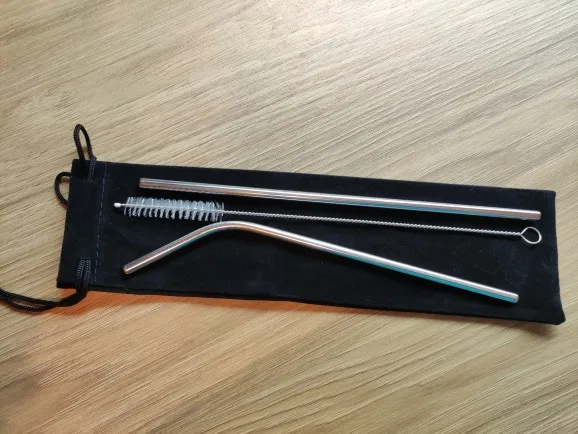 Экологичные многоразовые соломинки из нержавеющей стали, соломинки для питья, высокое качество, металлическая солома с чистящей щеткой и сумкой, оптовая продажа, лидер продаж
