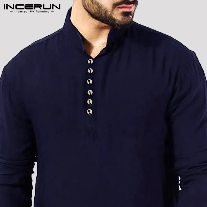 Рубашка INCERUN мужская с воротником-стоечкой, повседневная винтажн...