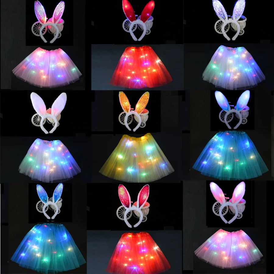 Женская светодиодная юбка для девочек, светящаяся юбка-пачка для вечевечерние, ободок, сказочный костюм на день рождения, модель 2022